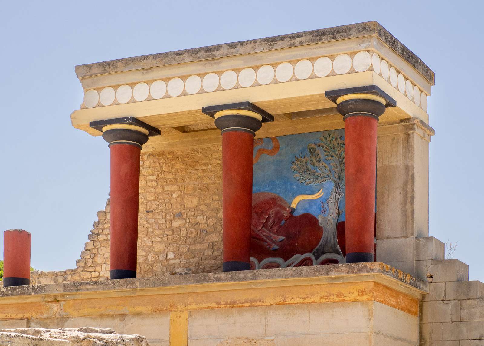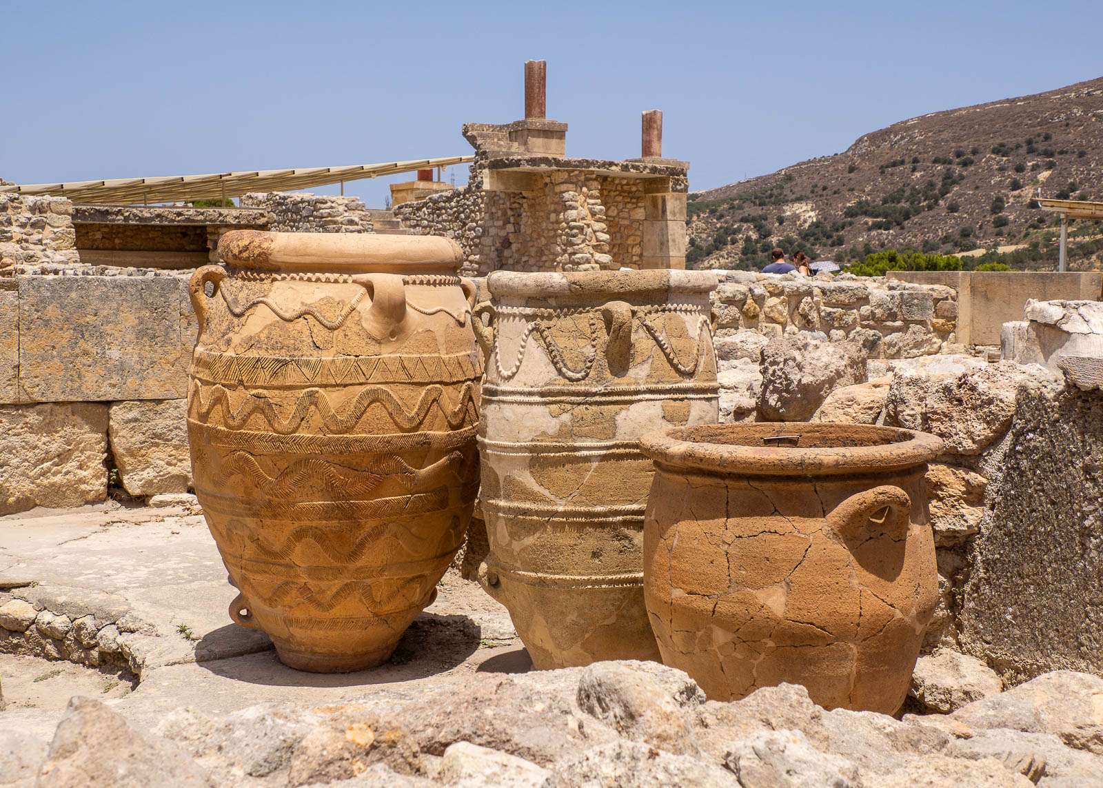 Värikkäiden seinämaalausten lisäksi alueelle toki mahtui kaikkea muutakin, pihoja, pylväikköjä ja portaita ihan riittämiin. Varastohuoneissa säilytettiin aikoinaan viljaa ja öljyä. Muutamia isoja säilytysastioitakin on nähtävissä. Alue on kooltaan ihan vaikuttava, muttei kuitenkaan niin valtava, etteikö sitä jaksaisi helteisenä päivänäkin kiertää.Pyhän härän isojen sarvien, minolaisten sarvien, kohdalla kannattaa myös pysähtyä hetkeksi, vaikka ne Sir Arthur Evansin “tuotantoa” ovatkin.