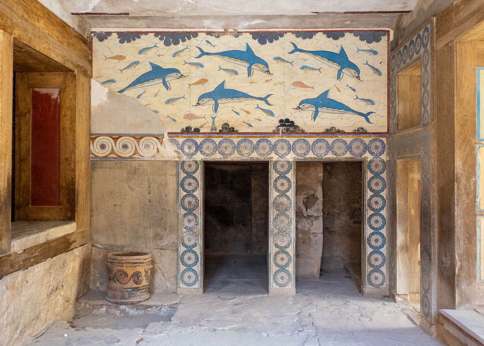 Satunnaista turistia, joka ei varsinaisesti ole perehtynyt minolaiseen kulttuuriin tai arkeologiaan, innostui juurikin julkeimmin väritetyistä palatsin osista. Mutta kannattaa siis muistaa, että eivät nämä kirkkaat värit ole säilyneet vuosituhansia ja osittain ne ovat mielikuvituksen tuotetta eivätkä välttämättä edes sellaisia kuin seinämaalaukset, jos niitä oli, aikoinaan olivat.