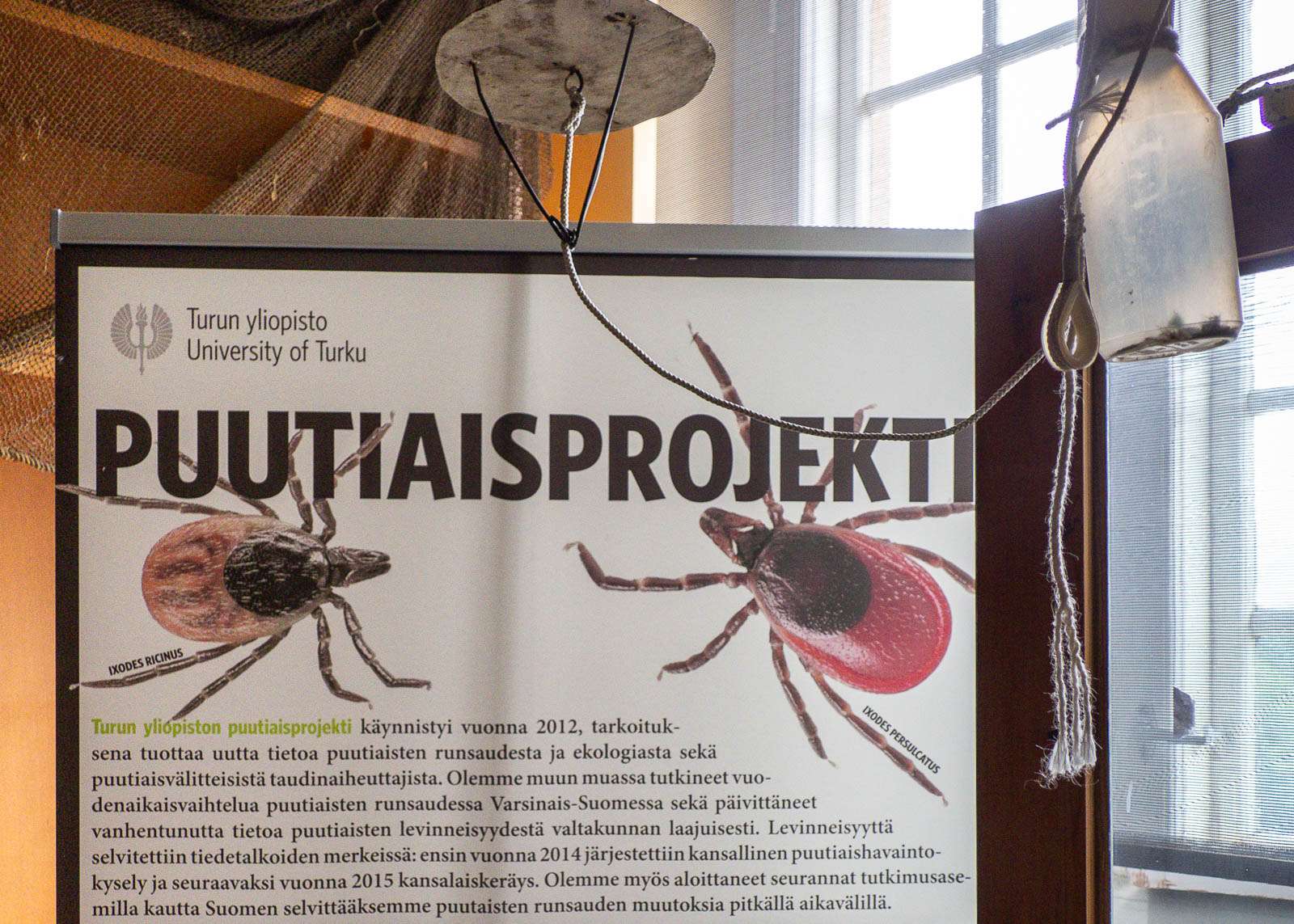 Museossa on sairaalaan liittyneitä esineitä ja mm. lehtileikkeleitä. Kaipa korppikin jonkinlaisena pahan ilman lintuna sopii hyvin tähän “maisemaan”.