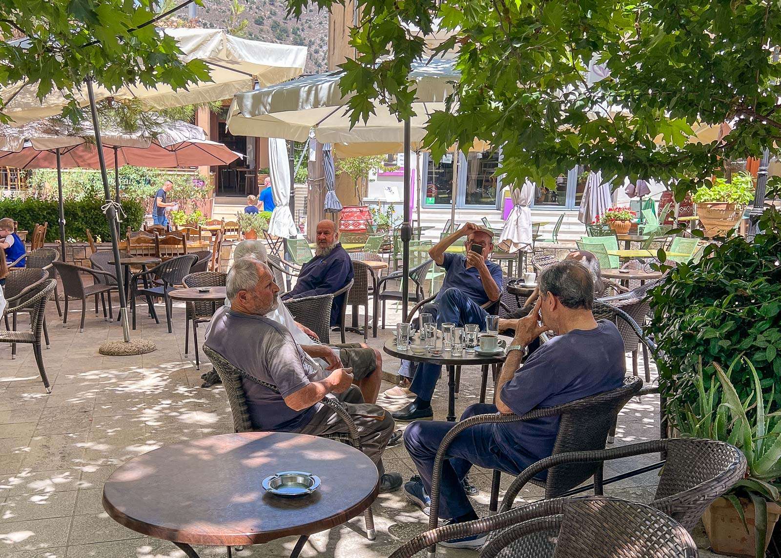 Juktas-vuorelle, kreikkalaisen mytologian mukaan, Zeuksen hautapaikalle, olisi ollut tarjolla patikointireitti ja upeita näkymiä sisämaan kylästä aina merelle asti, mutta viikolla, jolloin uutisointiin useammista patikointikuolemista Kreetallakin, ei patikointi olisi oikein käynyt mielessämme – eikä siihen toki olisi ollut lounastauolla aikaakaan.