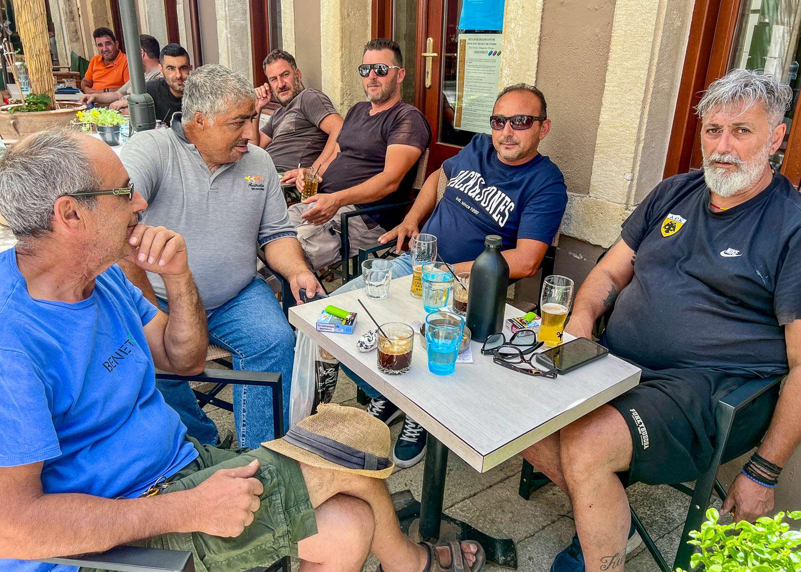 Kuvauksesi miehistä katukahviloissa, kissoista ja koirista kuulostaa juuri siltä, millaiseksi kuvittelen kreikkalaisen (tai eteläitalialaisen) keskipäivän paahteessa kylpevän kylän. Raukea idylli. Jos tie vie joskus Kreetalle, voisin mielelläni poiketa tuonne.