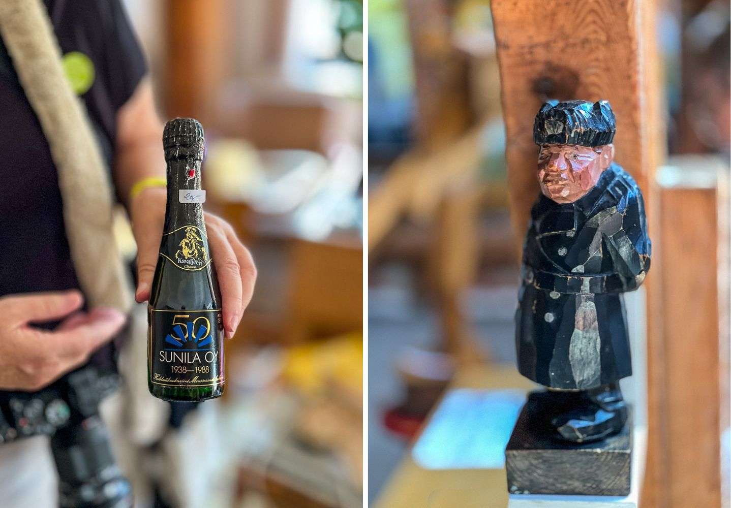 Muutamassa kohteessa esillä oli ihan myytävääkin taidetta. Kantolassa, siis tehtaanjohtajan entisessä omakotitalossa, oli ihan taidenäyttelykin, samoin jonkun kerrostalon vintillä. Asuntojen pihoilla asukkaiden ylimääräiset tavarat saattoivat vaihtaa omistajaansa pienillä kirpputoreilla. Melkein yllätykseksi itsellenikin ostin Sunilasta pienen kissankelloteemaisen purkin, kun se vaan viehätti silmää.