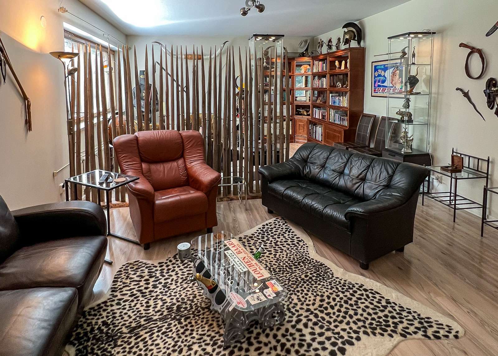 Yksittäisistä asunnoista odotimme eniten vierailua maailmanmatkaajaystävämme Harrin asunnossa Juurelassa. Harri asettui Sunilaan viime vuoden lopulla kotiuduttuaan niin useamman vuoden työpestistä Kosovossa kuin sen jälkeen tekemiltään matkoilta. Aikaa edellisestä pysyvämmästä kodista olikin ennen Juurelaa ehtinyt vierähtää jo seitsemän vuotta. Harri asuu Sunilassa alueen mittapuun mukaan isossa asunnossa. Joku toinen poikamies ei ehkä tarvitsisi kaikkia näitä neliöitä, mutta maailmaa todella paljon kiertänyt Harri tarvitsi kodin paitsi itselleen myös monille matkamuistoilleen. Siinä missä osa maabongauksesta kiinnostuneista, suomalaisistakin, käyvät, nykyisin enenevässä määrin melko reippaaseenkin tahtiin pisteet kaikista maailman maista, Harrin maailmankartta on erilainen. Hän kulkee maailmalla mielellään itse ajaen ja siirtyy maasta toiseen maarajojen yli. Nomadmanian järjestelmässä Harri onkin tällä hetkellä Suomen toiseksi eniten matkustanut henkilö.