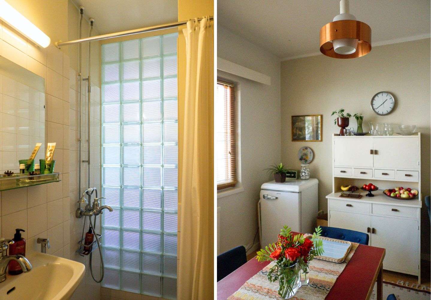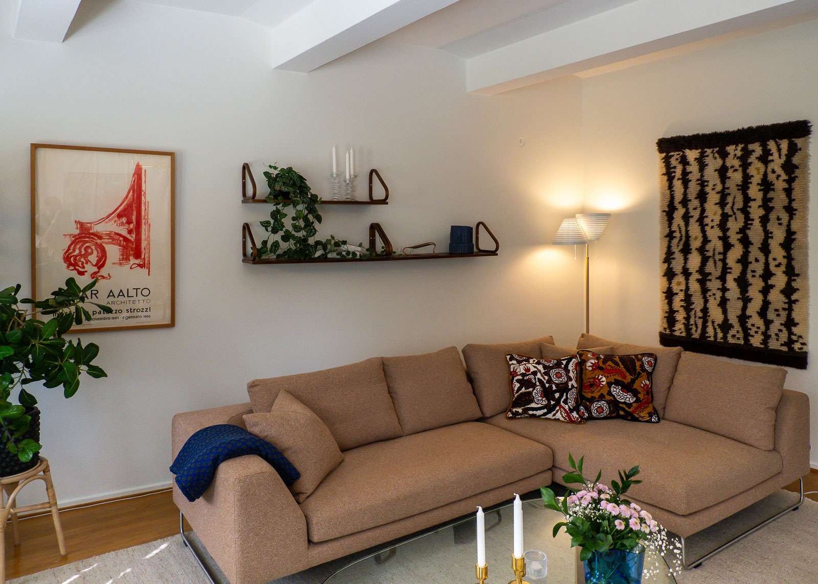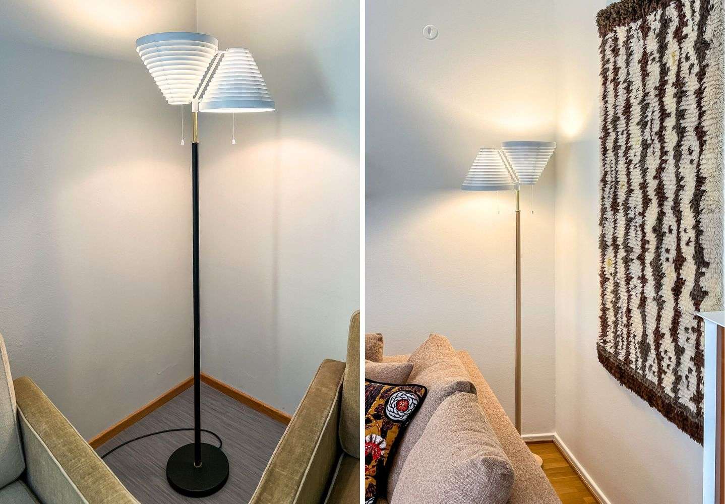 Isommissa asunnoissa näkyi myös lähes kaikkia Artekin valaisimia, mehiläispesiä kaikissa väreissä, myös punaisena, jota ei taideta enää ainakaa uutena myydä, lattiavalaisimia, niin A810 kuin enkelinsiipeä (A805). Jos asunnossa oli hyllyjä seinällä niin ne olivat poikkeuksetta mallia Artek 112B, joita meilläkin on pari kappaletta :-)