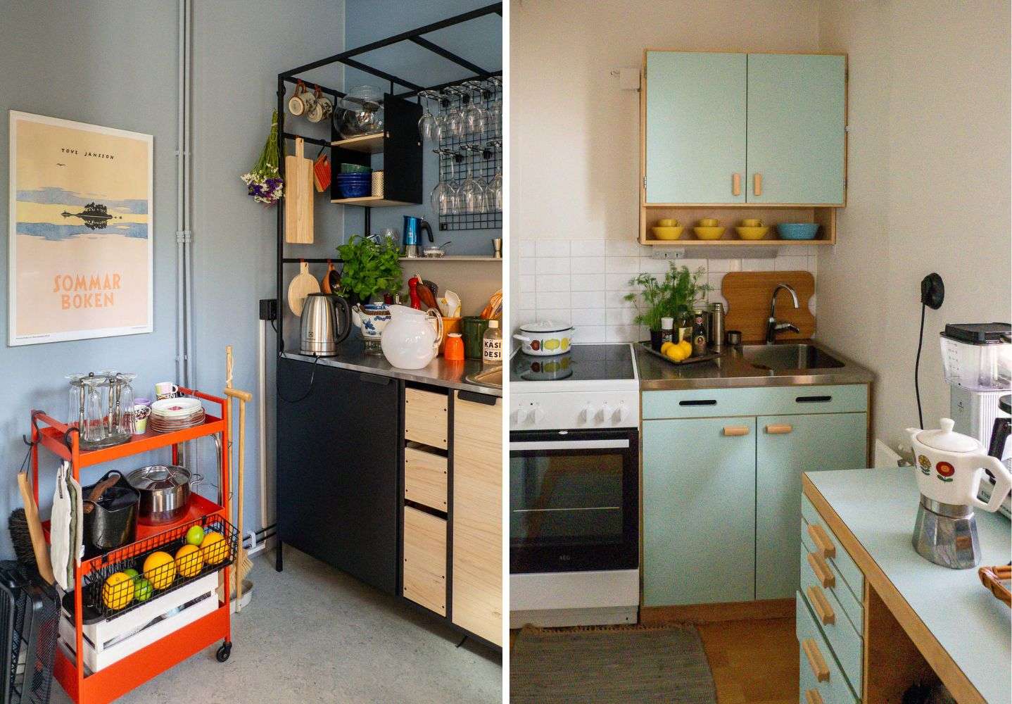 Kauniisti Artekin kalusteilla sisustettujen isojen asuntojen rinnalla Sunilassa toki oli myös useita persoonallisen värikkäästi ja kekseliäästi sisustettuja pienempiä asuntoja. Pienimmillään asuntojen kylpyhuoneet oli erotettu putkiremontin yhteydessä keittiötilasta lasitiilillä, joten minikokoiseen kylpyhuoneeseenkin saadaan hiukan seinän läpi siivilöityvää päivänvaloa. Pienimmillään keittiö saattoi olla kaappi asunnon eteisessä. Värien käyttökin oli osassa asunnoissa rohkeasti skandinaavisen vaaleasta poikkeavaa.