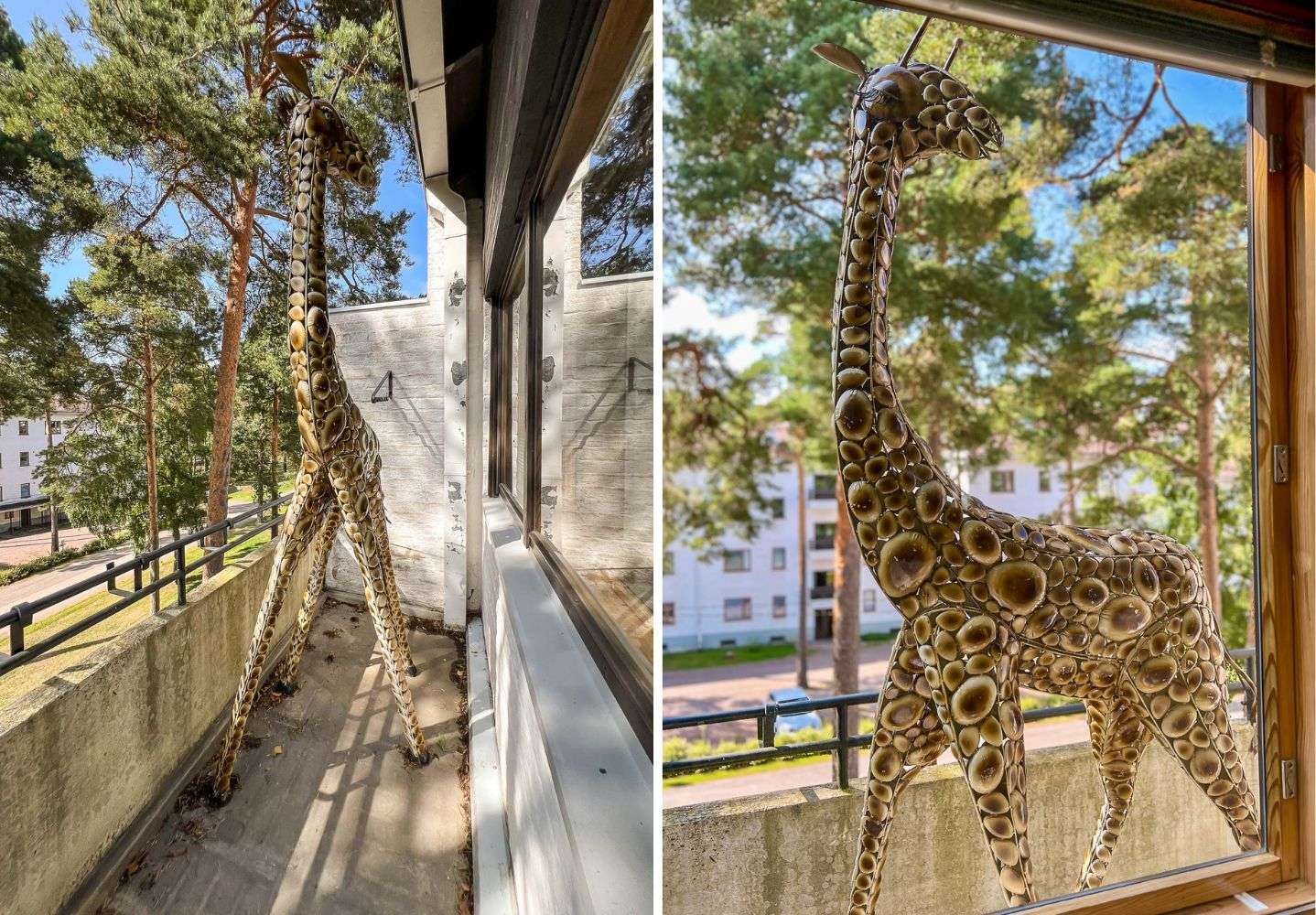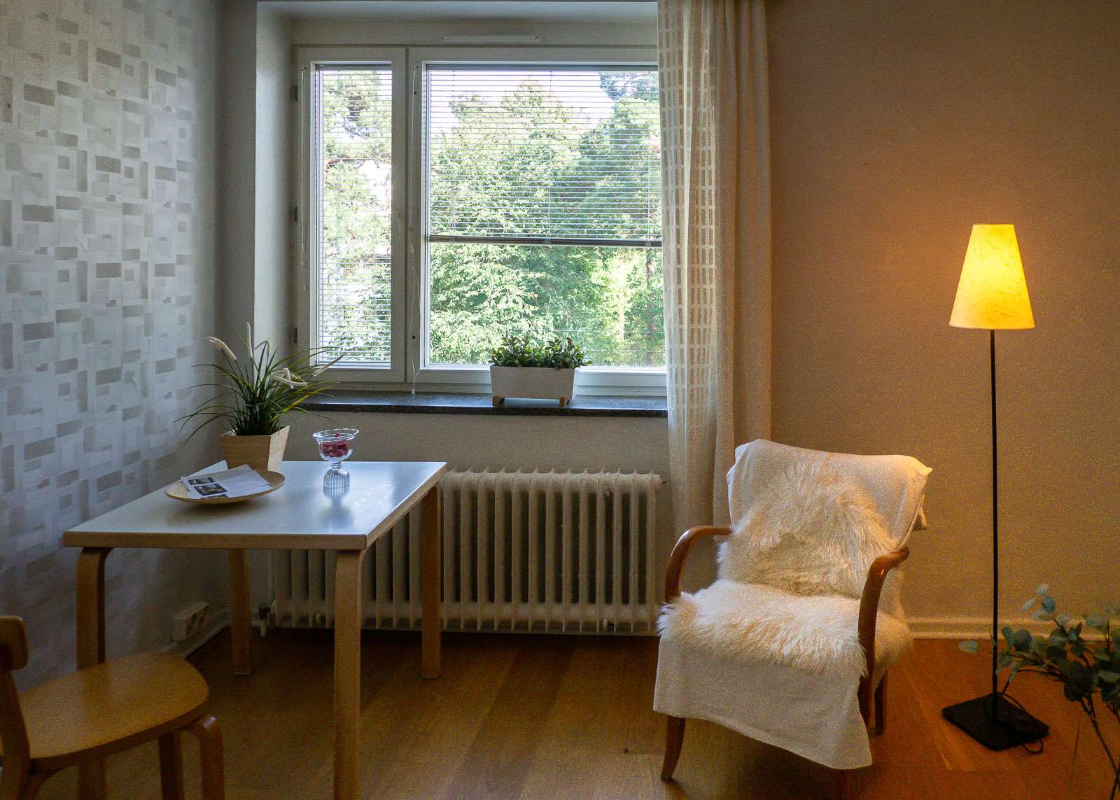 Avoimien ovien päivänä Sunilaan tutustuvalle onkin tarjolla reipasta porrastreeniä, sillä iso osa avoinna olevista kohteista sijaitsi ainakin tällä kertaa talojen ylimmissä kerroksissa, joten retki kulki portaita ylös, portaita alas ja sama uudelleen, ainakin kymmenen kertaa! Hienoiseen urheilusuoritukseen kannattaakin varautua mukavilla, helposti jalasta riisuttavilla jalkineilla ja juomapullolla. Joissakin asunnoissa oli tarjolla kenkäsuojia ja joihinkin sai mennä kengät jalassa, mutta avokkaan/loaferin tyyppiset jalkineet ovat paras valinta tähän kohteeseen.