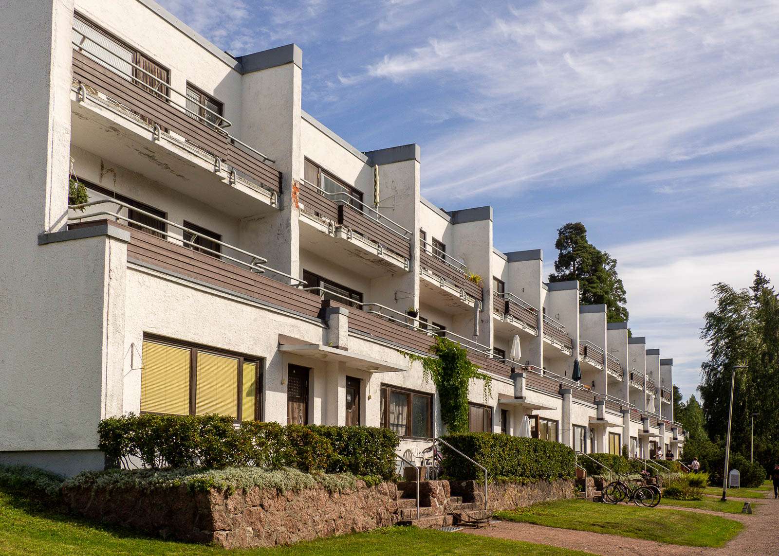 Olemme viime vuosina kiertäneet ehkä jo kohta ainakin valtaosan Suomen yleisölle avoimista Alvar Aalto -kohteista. Kesäkuussa kävimme katsomassa miltä Muuratsalon koetalo näyttää ja samassa yhteydessä tutustuimme Säynätsalon kunnantaloon. Heinäkuussa poikkesimme Merikarvian majakalle suuntautuneen retkemme yhteydessä katsomassa Euran terassitaloja. Vierailu Sunilan Aalto-kodeissa Kotkassa oli ollut kalentereissamme jo keväästä alkaen, mutta se toteutui vasta nyt elokuun loppupuolella, sillä Sunilan Aalto-koteihin ei voi noin vaan tupsahtaa vierailulle. Metsäinen lähiö ei ole museokohde vaan normaali asuinalue, jossa kuitenkin osa asunnoista avaa ovensa vierailijoille yhtenä viikonloppuna kesässä. Sunilan Aalto-kodit tapahtuma, arkkitehtuurin ja sisustamisen viikonloppu, järjestettiin ensimmäisen kerran elokuussa 2023 ja tänä vuonna suosittu tapahtuma uusittiin, ilmeisesti entistä suositumpana.