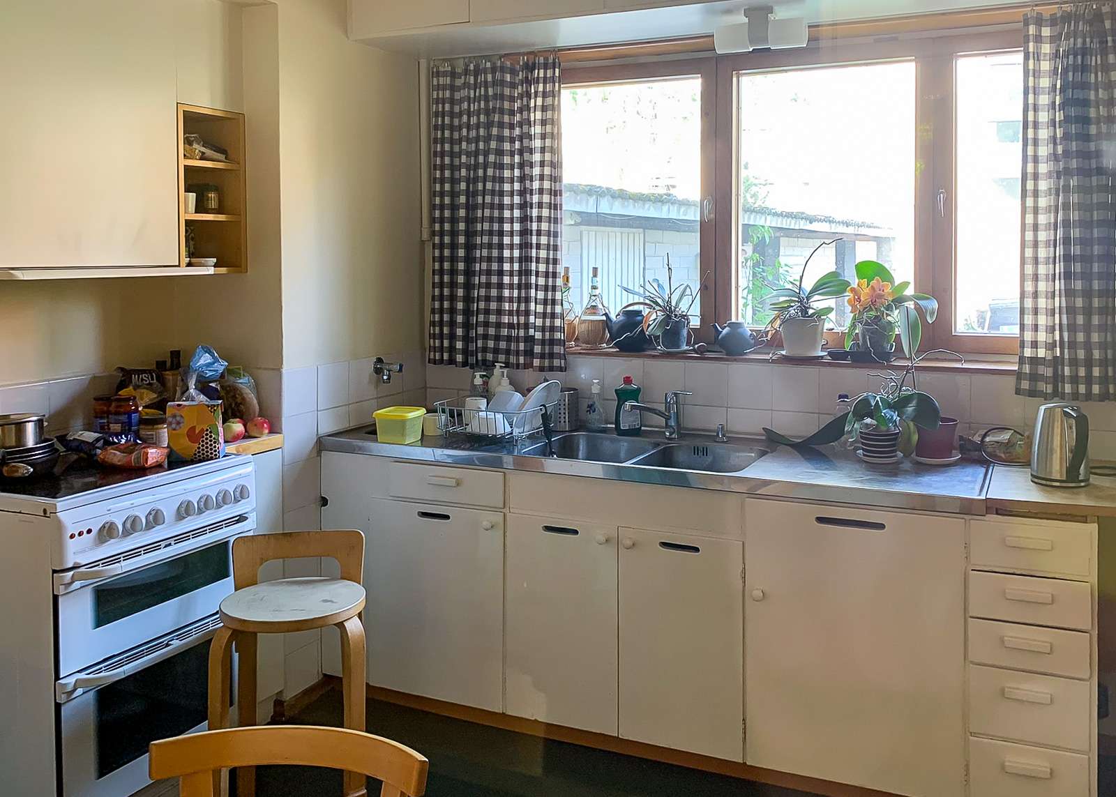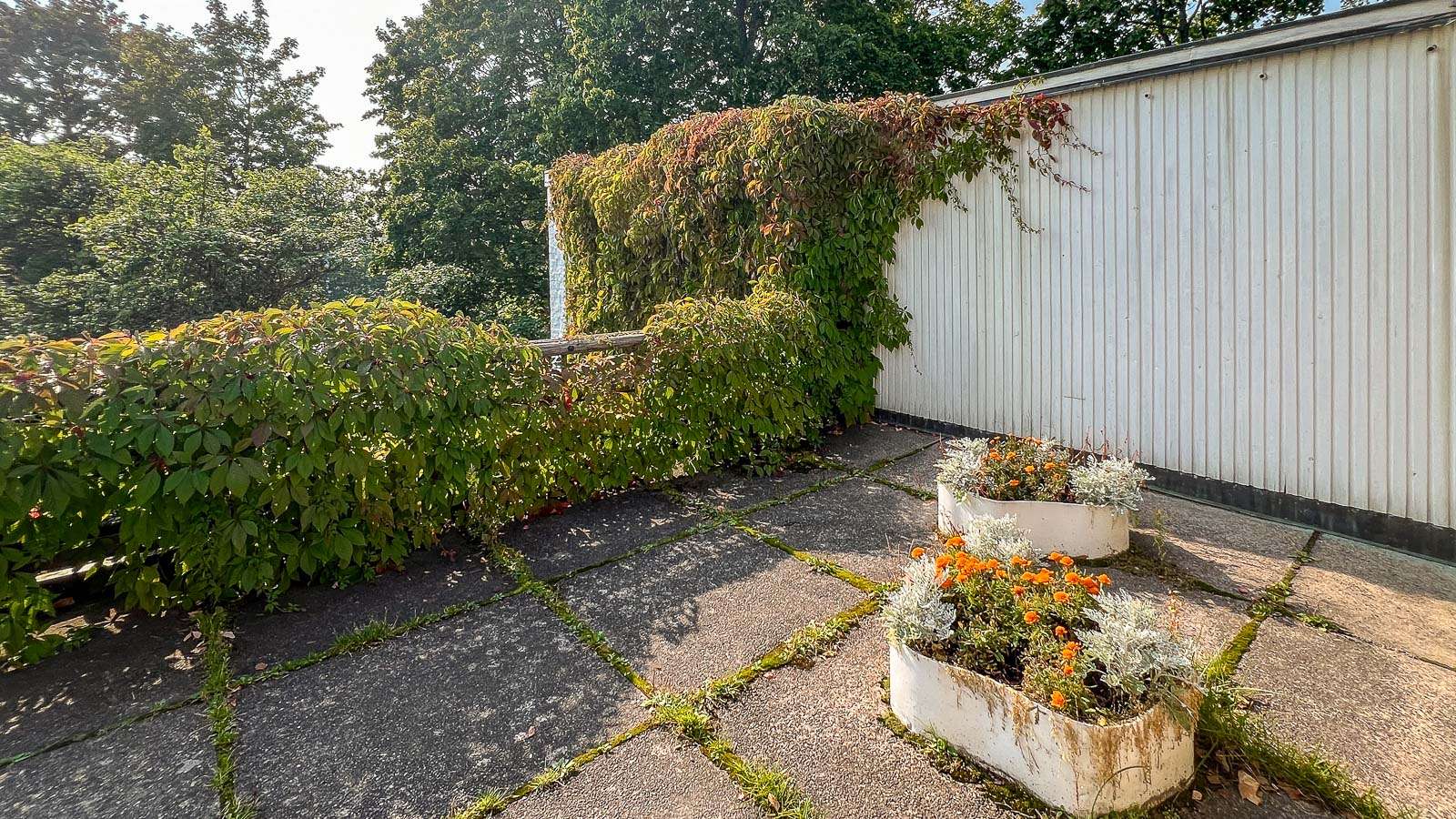 Myös pihasuunnittelu on Aallon käsialaa ja sekin on suomalainen, epämuodollinen. Villiviinikin rehoittaa kuten monessa muussakin vierailemassamme Aalto-kohteessa – joku irvileuka on tainnut sanoa, että villiviini peittää arkkitehdin virheet, mutta ehkei nyt tämän talon osalta kuitenkaan.