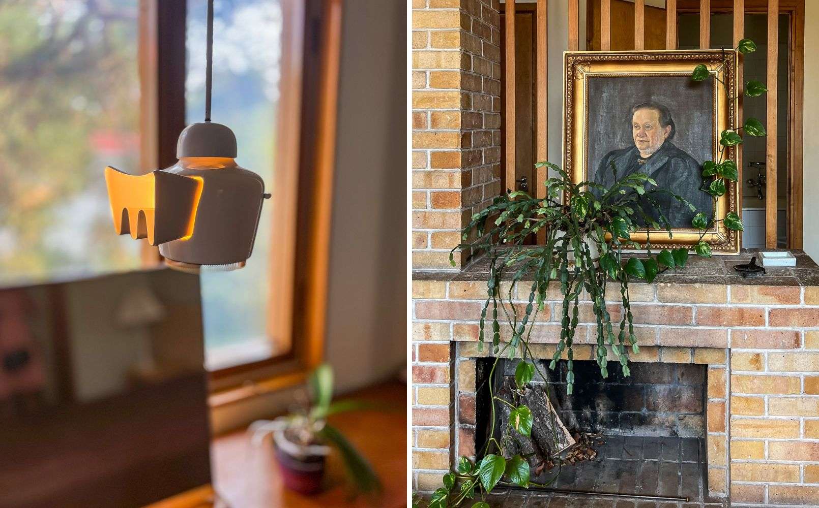 Maison Carréen harvinaisesta valaisimesta vielä toinenkin kuva. Yläkerran arkiolohuoneessa on talon kolmas takka. Tarina kertoo, että Alvar Aallon tädin muotokuva otettiin esille vain tädin vierailujen ajaksi :-)