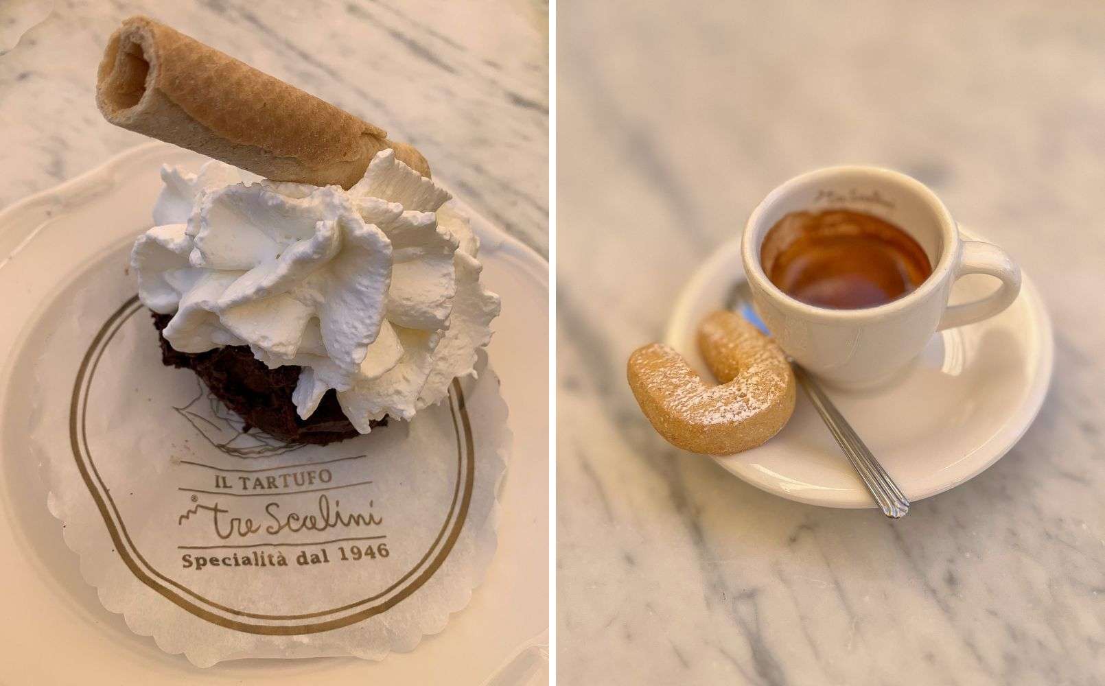 Ruoka oli hyvää ja ei ylihinnoiteltua. Mm meidän alueella Tiburtinassa kahden cappucino ja croissantit yhteensä 5€.
