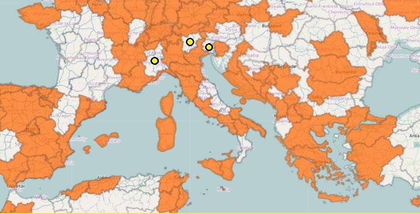 Selvitettyäni asiaa Italian osalta – käytyjä alueita nyt 12, jäljellä 9, innostuin tarkastelemaan asiaa myös muiden suurimpien Euroopan maiden osalta. Seuraavassa tilanne Euroopan kymmenen suurimman maan (pinta-alan mukaan), poislukien Venäjä ja Ukraina – edellinen ei nyt vaan enää ole mitenkään kiinnostava ja jälkimmäinen ainakin juuri nyt turhan haastava.