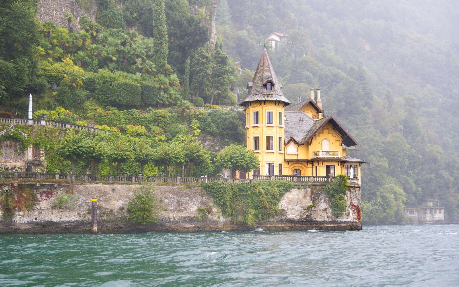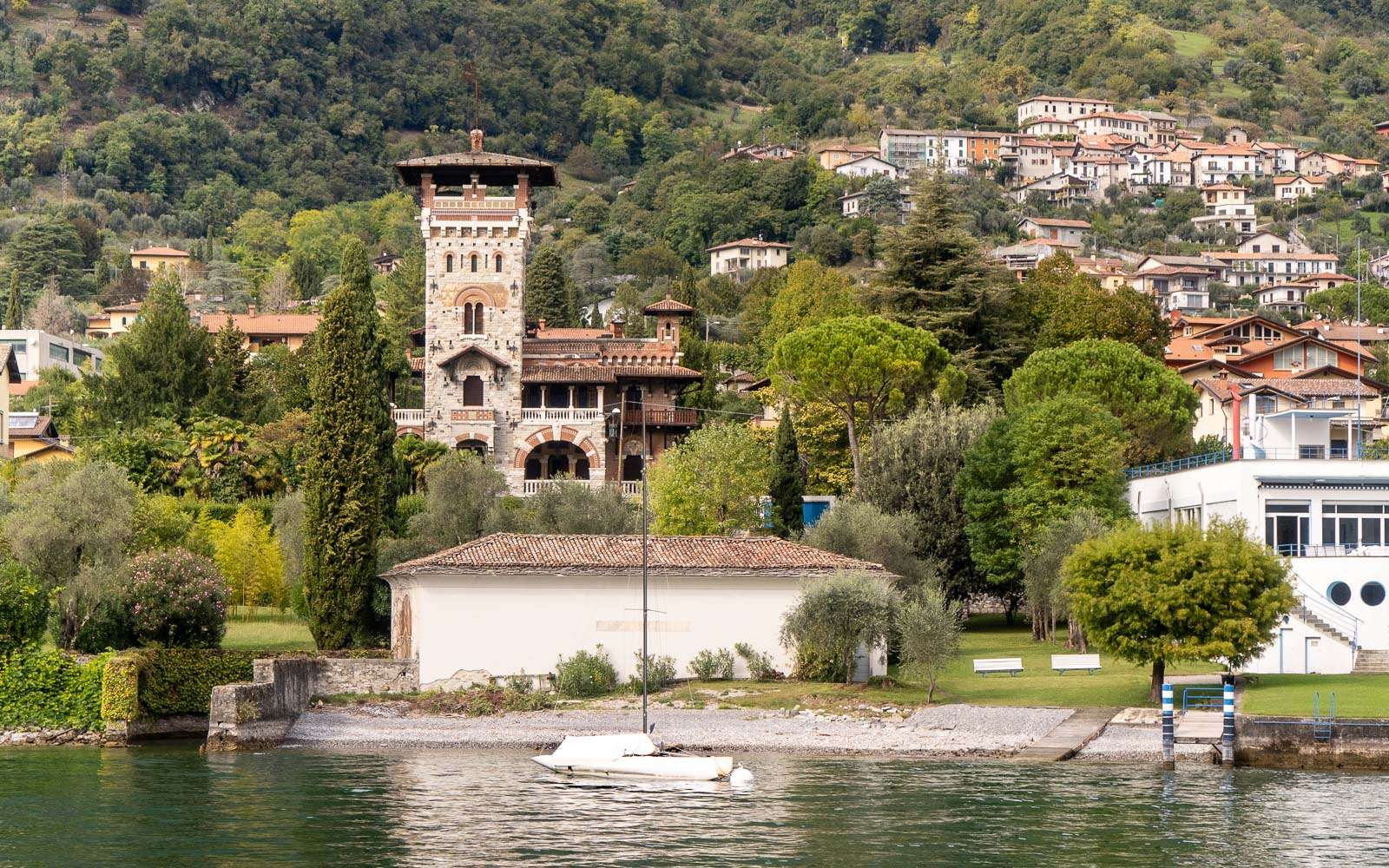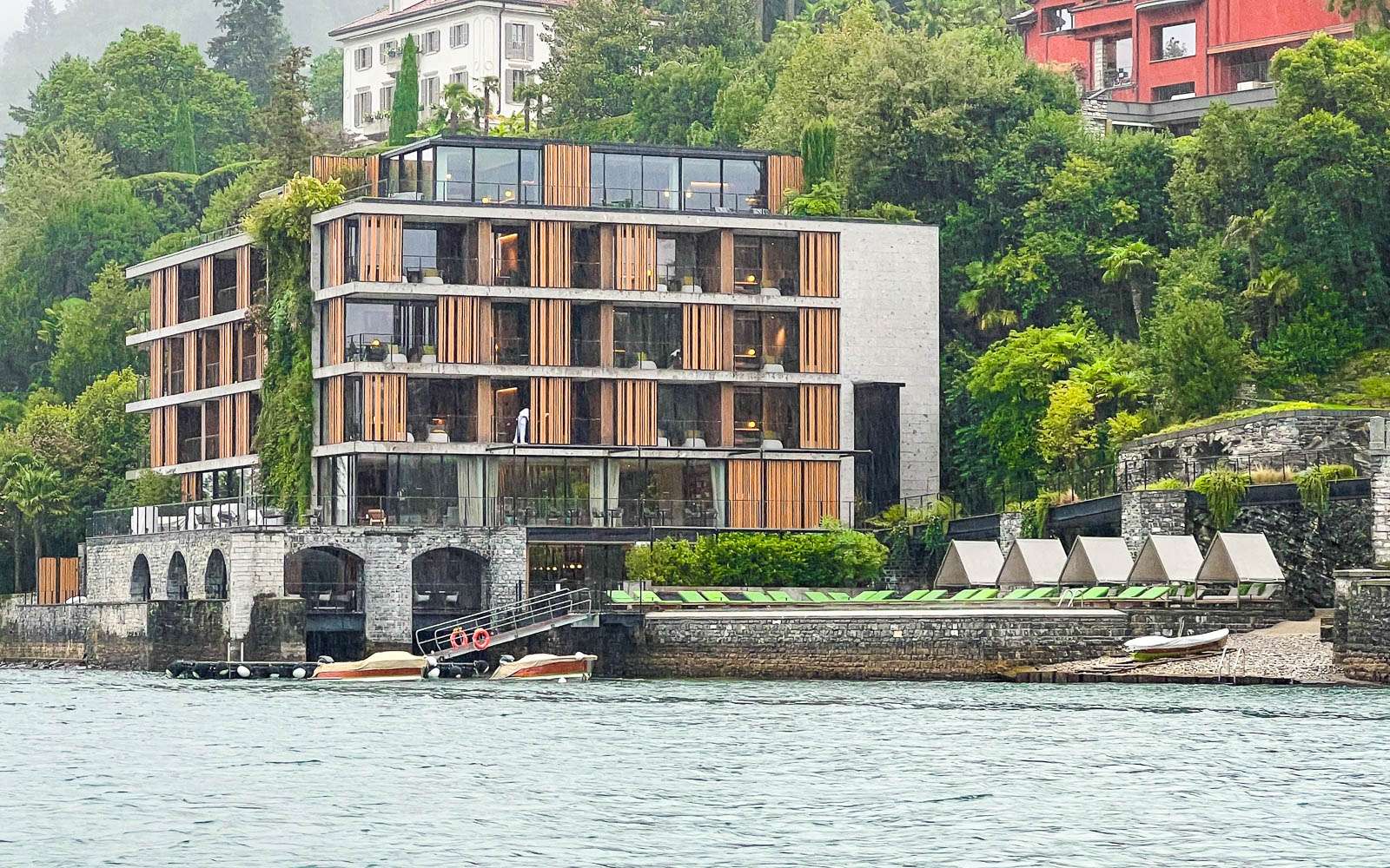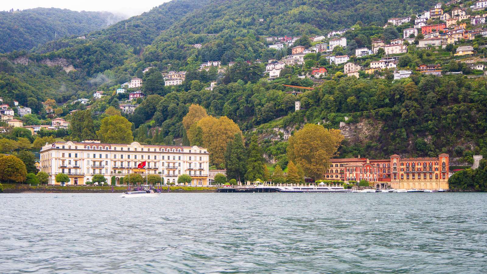 Teimme kaksi veneretkeä järvelle, toisen Bellagiosta osana pitempää retkeämme Comosta Bellagioon ja lopuksi vielä veneretken jälkeen Luganoon. Toisena, valitettavan sateisena päivänä, erityisesti kuvien kannalta, teimme toisen veneretken Comosta. Retket olivat 1 – 1,5 tunnin mittaisia ja osaavan kipparin kyydissä niillä ehti näkemään monen monta järven rannan huviloista ja ikonisimmista hotelleista. Kummatkin retket ostimme Get Your Guiden kautta. Veneretki Bellagiosta oli osa pitempää retkeä, joka alkoi Comosta, kävi myös Bellagion kylässä ja päättyi Sveitsin puolelle Luganoon, josta palasimme junalla Comoon.