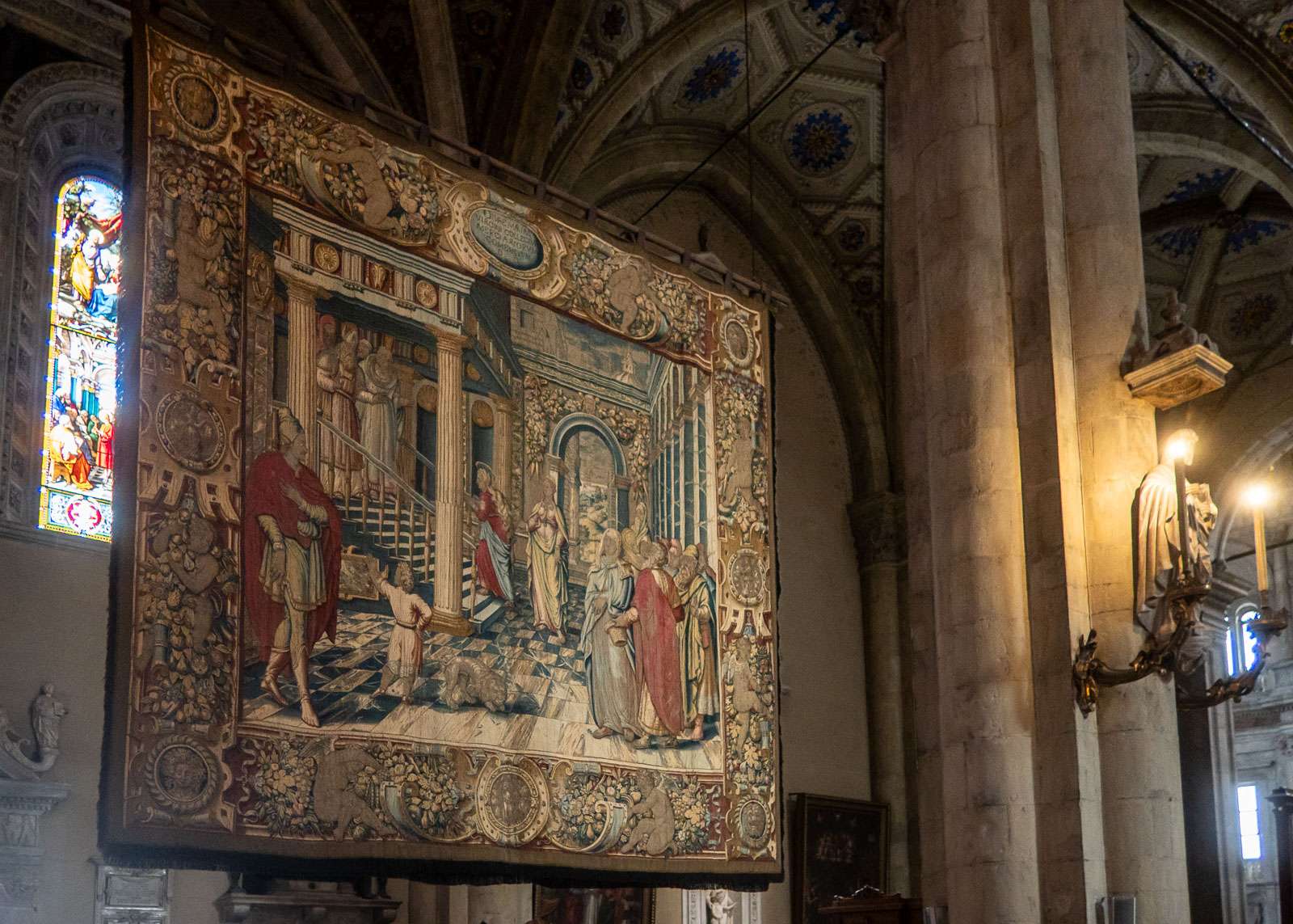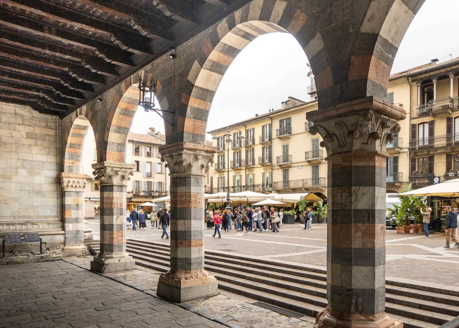 Kaupungin keskustan nähtävyyksistä merkittävin on, järven jälkeen, Comon tuomiokirkko (Duomo di Como, Cattedrale di Santa Maria Assunta, tosin tuolle jälkimmäisen pyhimyksen mukaan nimettyjä kirkkoja on Italiassakin useita, eli jos sitä sillä etsii kartalta, niin tarvitaan lisämääritteeksi Como). Ainakin paikalliset kehuvat kirkkoa ehkä merkittävimmäksi goottilaiseksi kirkoksi Pohjois-Italiassa. Jopa me, kirkkoturisteina laiskoja, päätimme poiketa kirkossa sisälläkin.