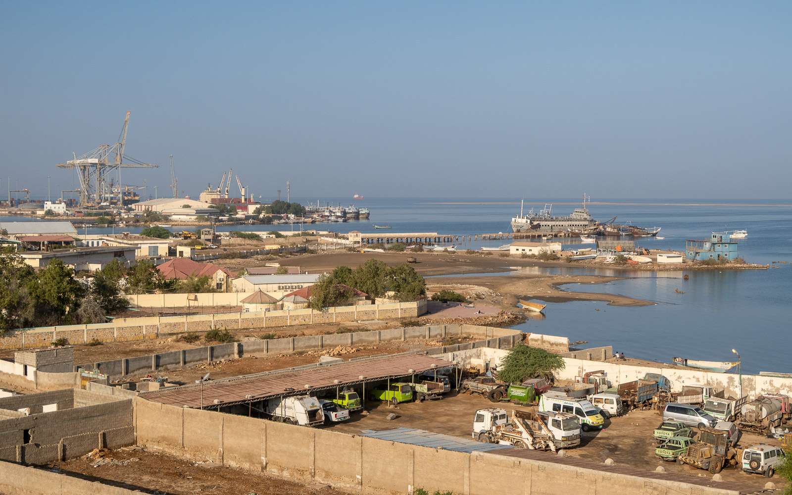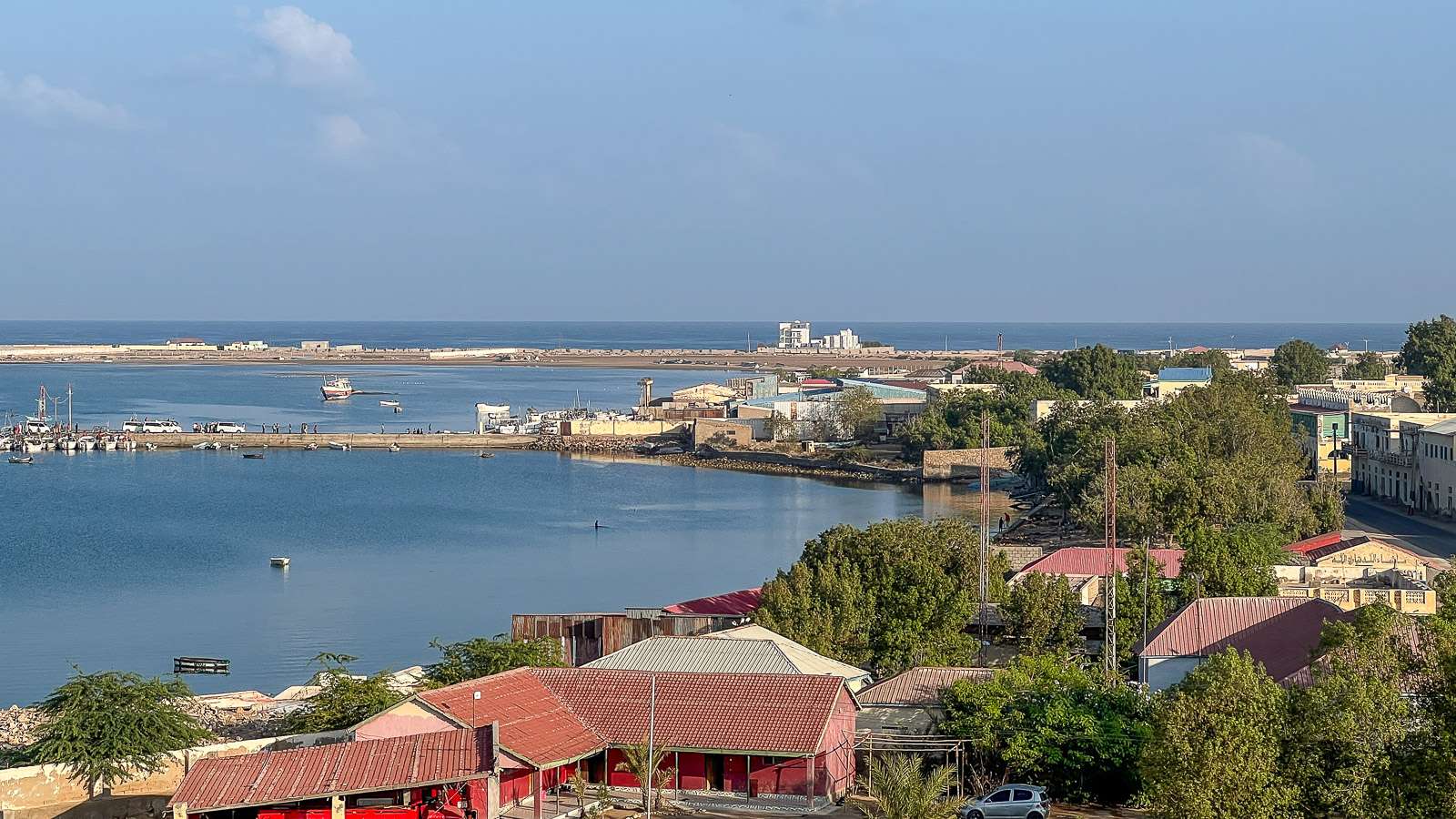 Berberan rannoilla sitä, että pienen kaupungin nimi vilahtelee kansainvälisissä uutisissa ei kuitenkaan näe. Berberan satama toki näkyy ja viivyimmekin tovin Damal-hotellin kattoterassilla vilkasta satamaa katsellen.