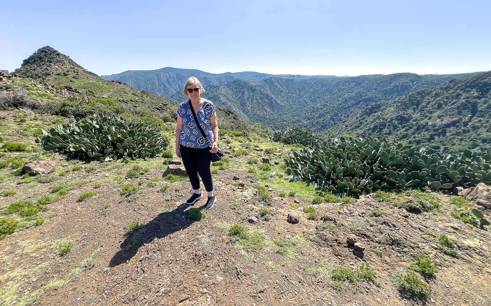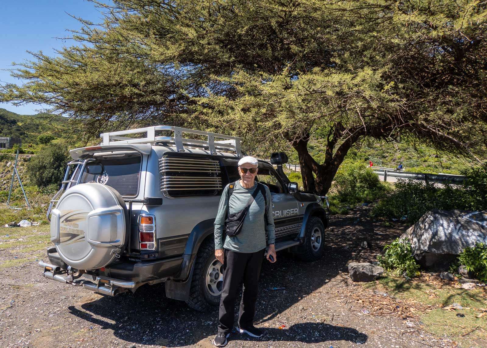 Ennen Hargeisaan paluuta teimme vielä pitkähkön ajomatkan Berberasta Golis-vuorille (ja takaisin). Näköalat perillä pienellä näköalapaikalla olivat ihan kelvolliset, mutta tältäkin osin mielenkiintoisin osuus oli muualla, eli matkalla. Alkuosa matkasta Berberasta itään oli tavallista maantietä, mutta vähitellen, nousun alettua, tie muuttui pienemmäksi, kiharammaksi ja ehkä myös jossain määrin turvattomammaksi, sillä esimerkiksi rekat kulkivat saattueissa, joiden edessä ja takana oli auton verran sotilaita. Jollain välillä ottivat meidätkin mukaansa saattueeseen – vaikka olihan meillä omakin turvamiehemme mukana, mutta vain yksi mies ja ja yksi kivääri. Mitään ei kuitenkaan missään vaiheessa sattunut ja ainakin meille vakuutettiin, että turvamieskin on matkassa enemmän muodon kuin tarpeen vuoksi.