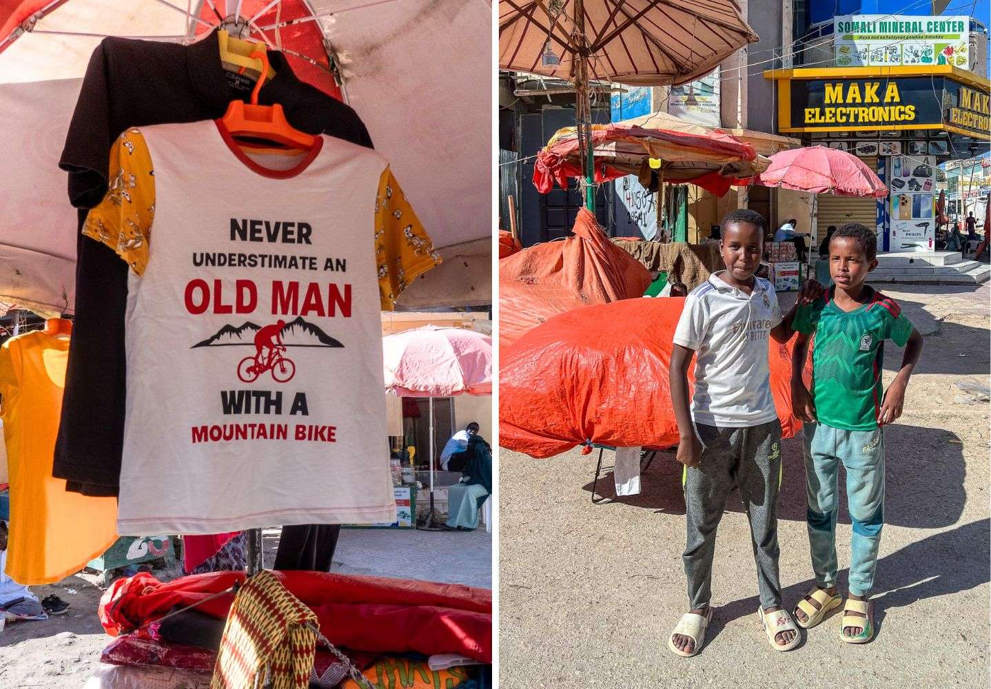 Markkinoilla poikkesimme oppaamme ja vielä Berberan retken jäljiltä autossamme mukana olleen aseistetun vartijan kanssa. Hargeisan markkinoiden tunnetuimpia tuotteita saattavat olla setelipaalit ja niitä mekin olimme tulleet katsomaan. Somalimaan valuutan arvo on, sanotaanko nyt, melko alhainen ja sen myötä paikallista valuuttaa myydään kahvipaketin kokoisissa nipuissa. Niput päällekkäin aseteltuina muodostavat jo sanotaanko nyt vaikka rahapaalin.
