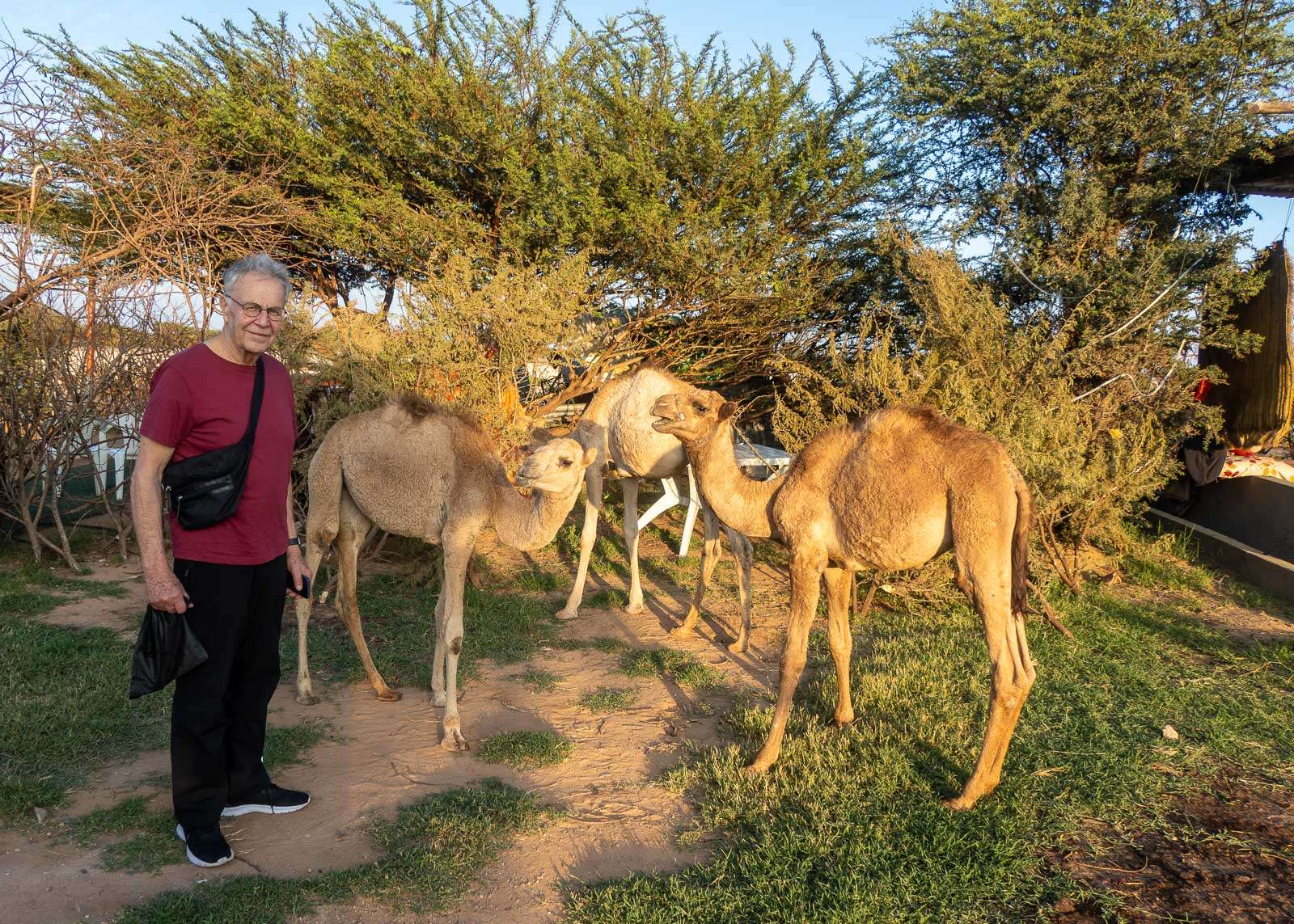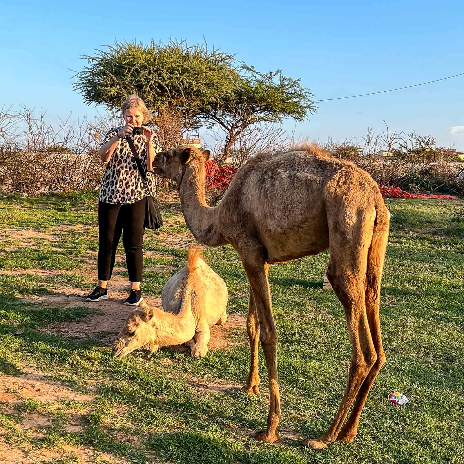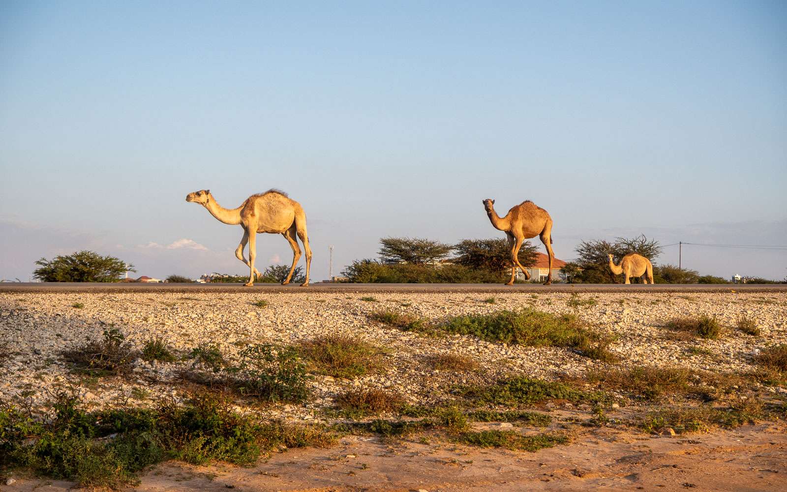 Ihan ilman kameleja emme kuitenkaan Hargeisassakaan jääneet, sillä tuloiltanamme kävimme oppaamme kanssa kaupungin laidalla sijaitsevalla kamelifarmilla, jossa oli muutamia kameleita ja baari, jossa olisi voinut virkistäytyä kamelin maidolla. Oppaamme ja kuskimme nauttivatkin tästä juomasta, mutta me käytimme ajan mieluummin kiertelemällä pientä farmia.
