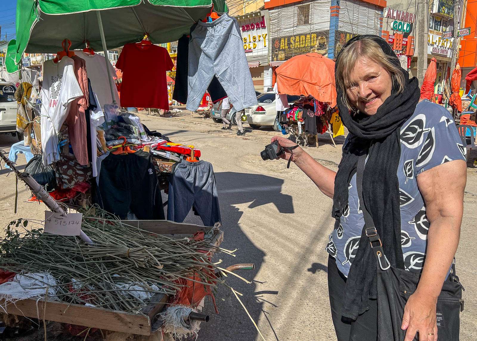 Viivyimme päivällä markkinoilla vain hetken, sillä palatessamme Berberasta olin valinnut pukeutua caprihousuihin ja lyhythihaiseen puseroon. Oppaamme oli vähän sitä mieltä, että jos haluamme myöhemmin vielä palata markkinoille – nekin olivat ihan hotellimme lähellä – niin minun kannattaisi ehkä sittenkin valita asukseni mekko, se ainoa, joka matkassani oli mukana ja jonka olin pakannut mukaan Somalimaata varten. Ei Hargeisassa kukaan mitään abayaa länsimaisilta turisteilta vaadi, mutta mekko ja huivi olisivat ehkä vähän vähentäneet saamaamme huomiota. Emme sitten kuitenkaan palanneet markkinoille, kun ei nyt varsinaisesti ollut tarvetta esimerkiksi uusille kengille tai koraanille. Hedelmiäkin olimme ostaneet jo Berberasta lähtiessämme.