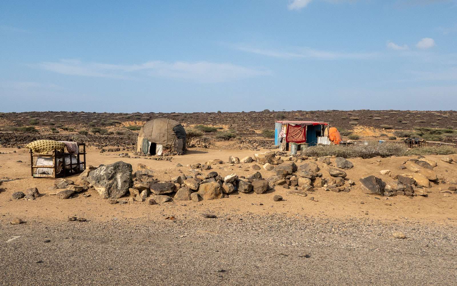 Tien varrella näimme myös siellä täällä tyypillisiä afar-kansan asumuksi: puusta rakennettuja kehikoita, joiden päälle oli aseteltu kankaita ja taljoja.