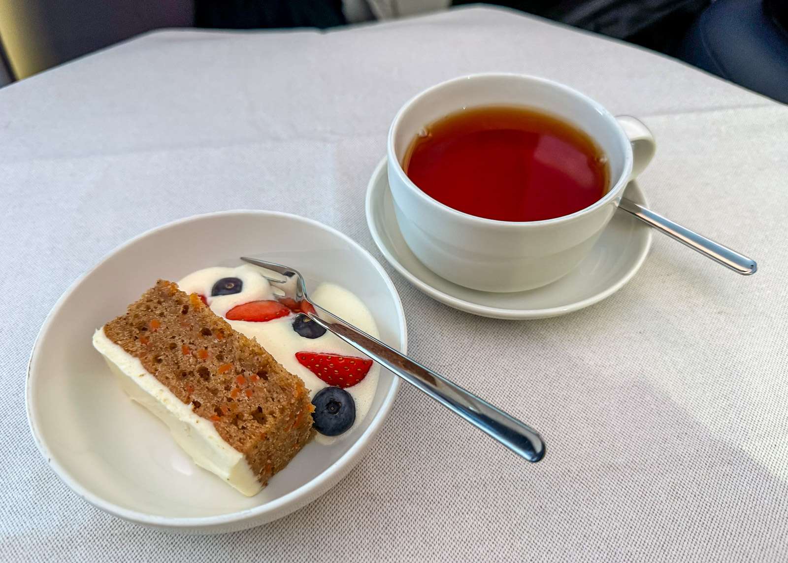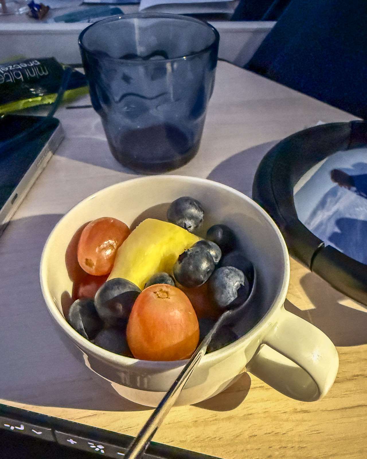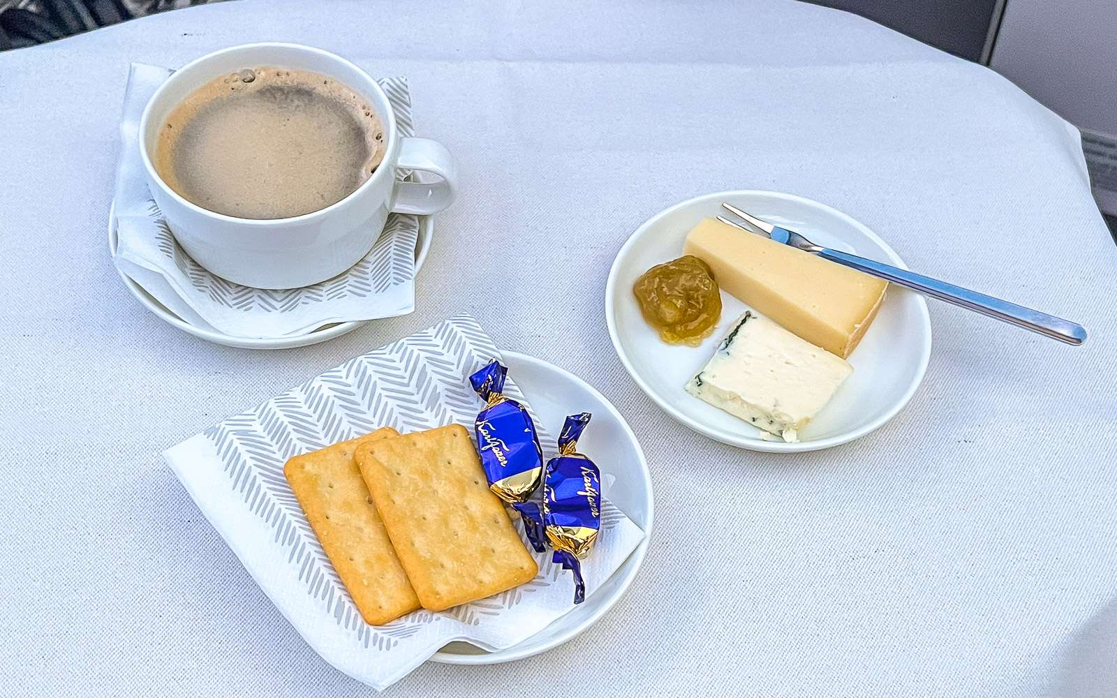 Joskus jopa Premium Economy -luokassa matkustaessamme meille on käynyt niin, että jotkut ruokavaihtoehdot ovat loppuneet jo ennen kuin tarjoilu on saavuttanut meidät, mutta tällä kertaa niin ei käynyt. Kuulemma haluamansa vaihtoehdon voisi kyllä varata etukäteenkin, jos haluaa varmistaa tietyntyyppisen ruuan saatavuuden.