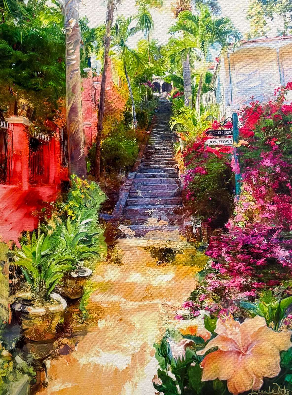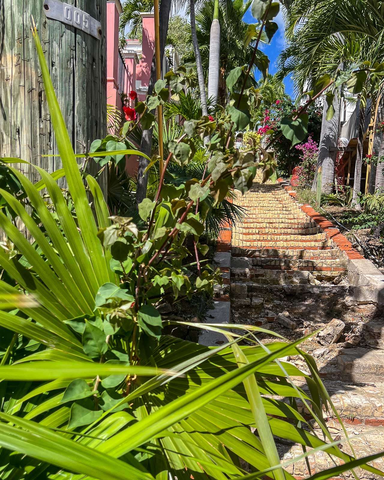 Kävimme myös katsomassa 99 Steps -nimisen portaikon, mutta emme päässeet niitä nousemaan, sillä juuri vierailumme aikana niitä kunnostettiin. Portaissa ei sinänsä ole mitään ihmeellistä, tanskalaiset vaan rakensivat niitä useampaan kohtaan kaupunkia, sillä kaupunki sijoittuu paikoin jyrkillekin kukkuloille. Portaiden rakennusmateriaalina käytettiin tiiliä, jotka tuotiin Euroopasta Karibialle laivojen painolastina. Eikä niitä portaita muuten ole 99, vaan ehkä 104 tai 105, kertoo netti.
