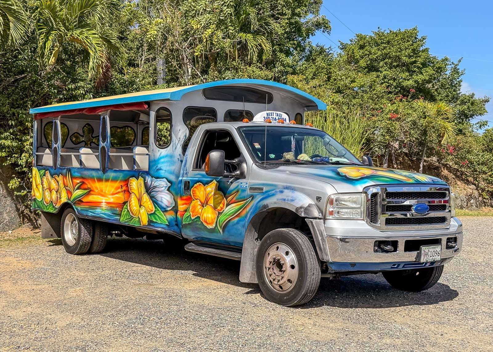 St. Croixilla on kaksi kaupunkia, saaren pääkaupunki Christiansted ja Frederiksted, jonka satamaan useimmat isot risteilyalukset rantautuvat. Matkaa kaupunkien välillä on runsas 20 kilometriä, mutta kimppataksit kuljettavat risteilymatkustajia Frederikstedistä Christanstediin ja takaisin päivän mittaan melko sujuvasti ja melko edullisesti. Melko sujuvasti, sillä kimppataksin lähtöä voi toki hetken joutua odottelemaan ja lähtöjä takaisin päin on ehkä kerran tunnissa. Melko edullisesti: 20 euroa per nuppi per suunta? No, laivaretkenä poikkeaminen kaupungissa olisi kyllä maksanut enemmän kuin 40 taalaa per nuppi. Valitsimme kimppataksin, emme päiväretkeä Frederikstedin satamasta tarjoavaa taksia, sillä halusimme viettää ainakin muutaman tunnin Christianstedissä. Toisaalta saariretkenä olisi voinut poiketa muuallakin saarella. Rannoista emme olisi olleet kiinnostuneita, mutta jos aikaa olisi ollut enemmän, niin historiallinen Whim sokeriplantaasi tai Point Udall, Yhdysvaltojen itäisin kolkka, olisivat voineet olla kiinnostavia.