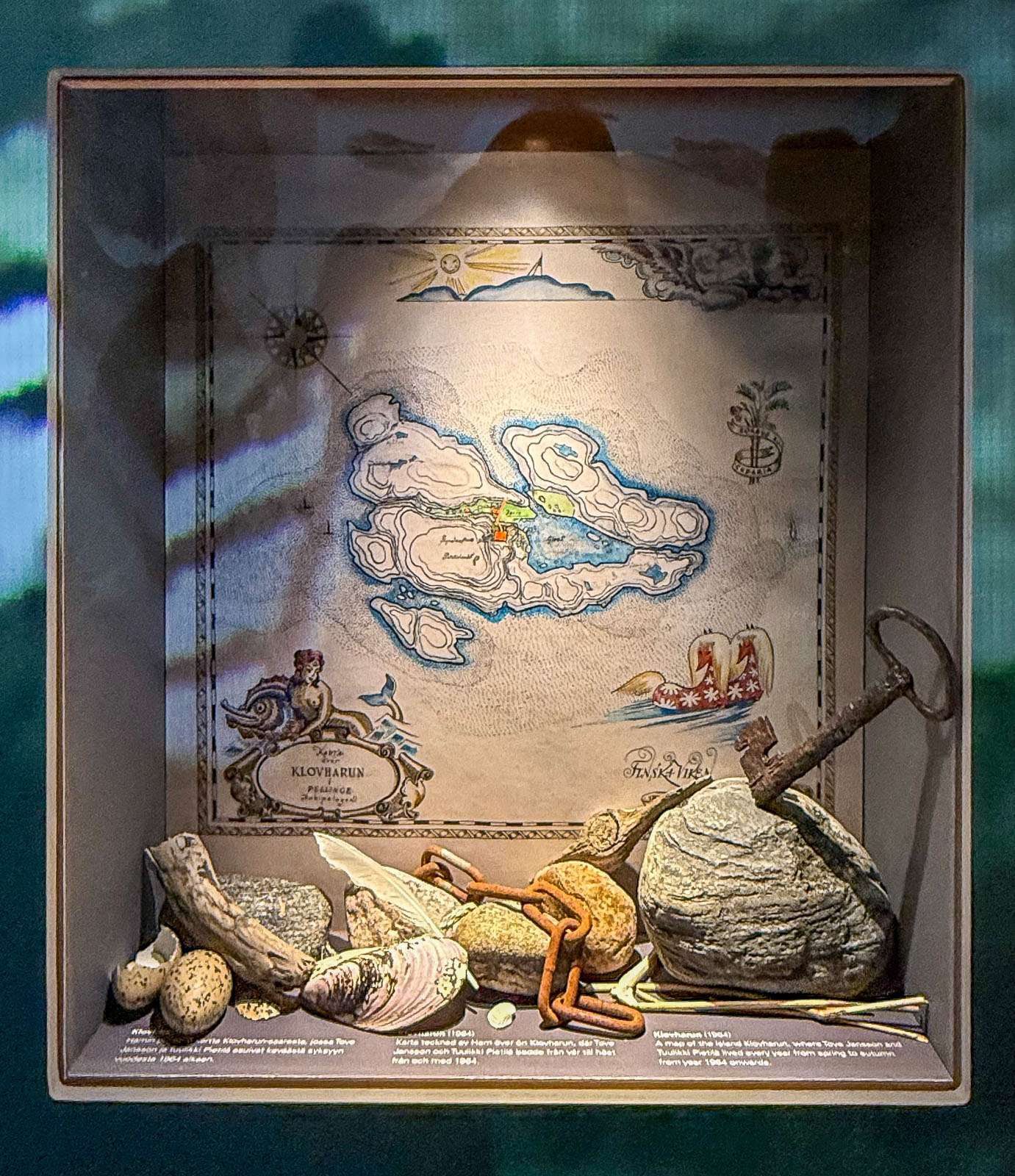Liitän tähän vielä linkin Meri ja Tove -kirjasta joitakin vuosia sitten kirjoittamaani juttuun, niin tuleepahan kerättyä samaan juttuun lähes kaikki Tove Janssoniin liittyvät jutut :-) – kirjaa, kuten tietysti Kesäkirjaakin, myydään mm. Merikeskus Vellamon museokaupassa ja vieraillessamme siellä Kymenlaakson hiihtolomaviikolla, tuntui kauppa käyvän hyvin, etenkin tietysti Kesäkirjan osalta, jonka kansikuvasta nappasin palan tämän jutun otsikkokuvaksi.