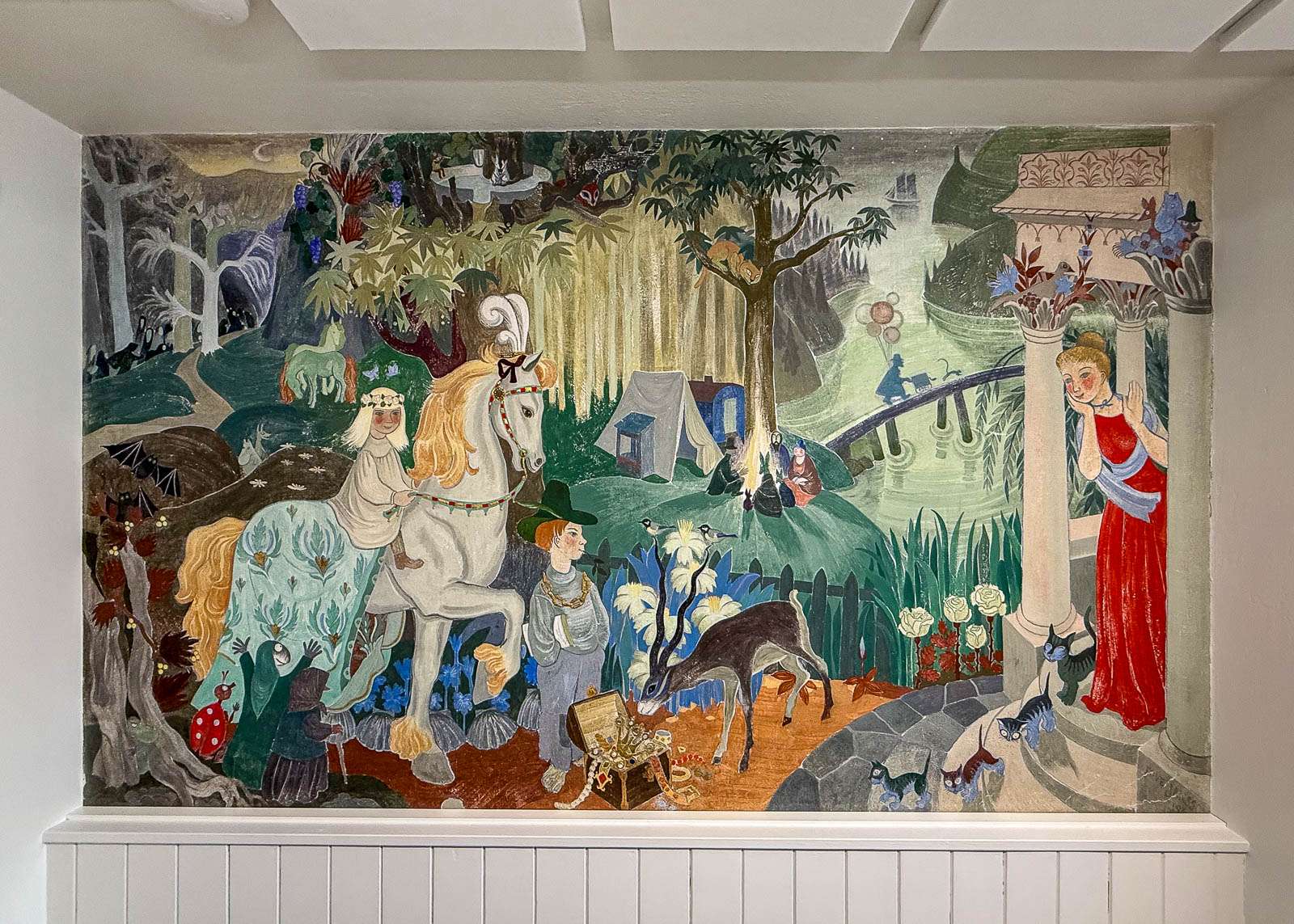 Satupanoraamat toteutettiin silloin Kotka Federations Stevedoring -satamayrityksen yksityiseen lastentarhaan al secco -tekniikalla vuonna 1949. Merenkulkuoppilaitoksen seinämaalaus on vuodelta 1952.