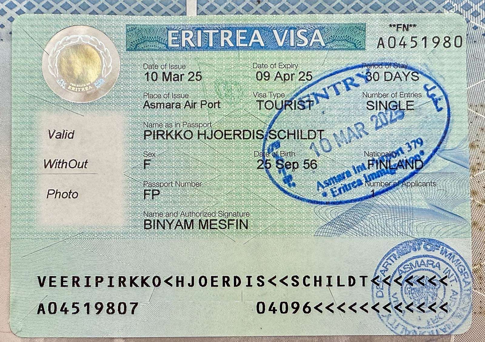 Kiitos Cilla Maria! Eritrea on erityisesti aikaisemmin ollut viisumin osalta haasteellinen, mutta nyttemmin paikalliset matkanjärjestäjät saavat sen järjestymään siten, ettei passia tarvitse etukäteen käyttää lähetystössä vaan varsinaisen viisumin saa sitten pienellä hässäkällä rajalta kunhan siitä on etukäteen hyväksyntä, joka tarvitaan jo, että pääsee lennolle. Epäilen vähän, ettei tuolla nettiä olisi noin löytynyt, kun maassa ei ole edes kunnolla mobiiliverkkoa.