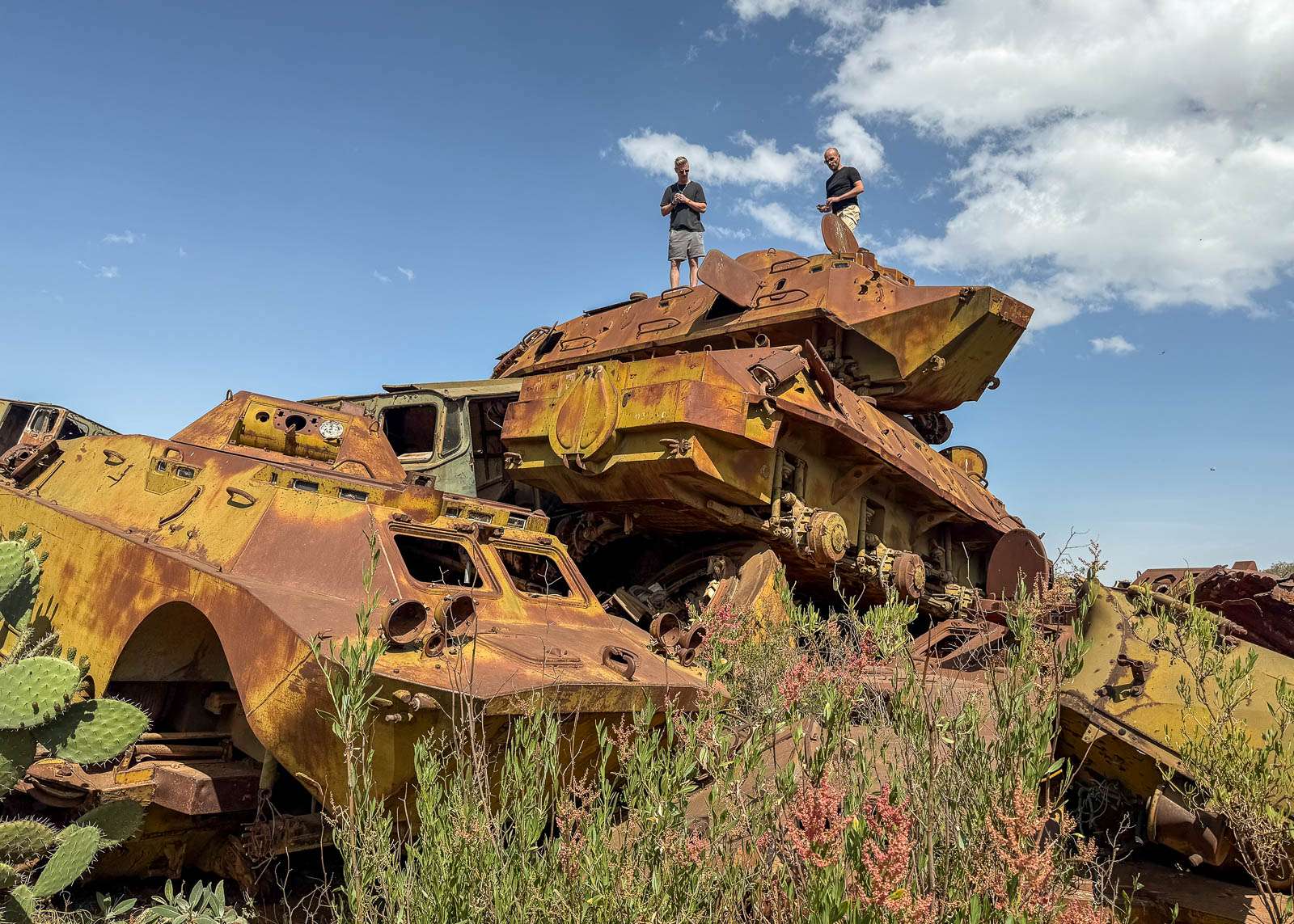 Toki Eritreassa voi vierailla omatoimisestikin (lue esimerkiksi ystävämme Danielin matkasta tästä), mutta olin kiinnostunut kokeilemaan One Step 4Wardin matkoja ja pidin hänen matkansa ohjelmasta, johon sisältyi myös retki satamakaupunki Massawaan, jopa veneretki Dahlakin saaristoon Punaisella merellä ja pienempänä yksityiskohtana retki tankkien hautausmaalle lähellä nykyistä pääkaupunkia Asmaraa. Kaikki kohteita, joihin on erikseen hankittava matkustusluvat.