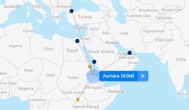 Addis Abeba Etiopiassa on yksi Afrikan suurista lentohubeista, mutta Asmaraan sieltä ei lennetä. Badmen alueen kiistan päätyttyä vuonna 2018 alueen luovuttamiseen Eritrealla suhteet maiden välillä paranivat – hetkeksi. Asmarasta saattoi lentää Addis Abebaan ja suurlähetystöt avattiin uudelleen. Tigrayn konfliktin yhteydessä jännitteet taas lisääntyivät ja lopulta Ethiopian Airlines ilmoitti syksyllä 2024 taas keskeyttävänsä lennot Eritreaan vedoten “erittäin vaikeisiin toimintaympäristön olosuhteisiin”.