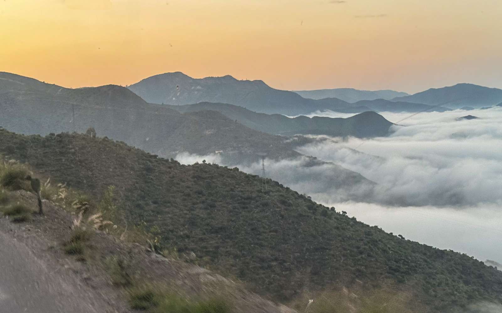 Paluumatkalla meillä oli sään – erityisesti pilvien – suhteen parempi onni, sillä pilvikerros oli ohut ja loppumatkasta lähellä Asmaraa nousimme jo pilvien yläpuolelle. Pilvikerroksen ympäröimä vuoristo laskevan auringon jo punertaessa maisemaa olikin jo sellainen näky, ettei kenelläkään enää ollutkaan kiire Asmaraan ja hotellille siellä!