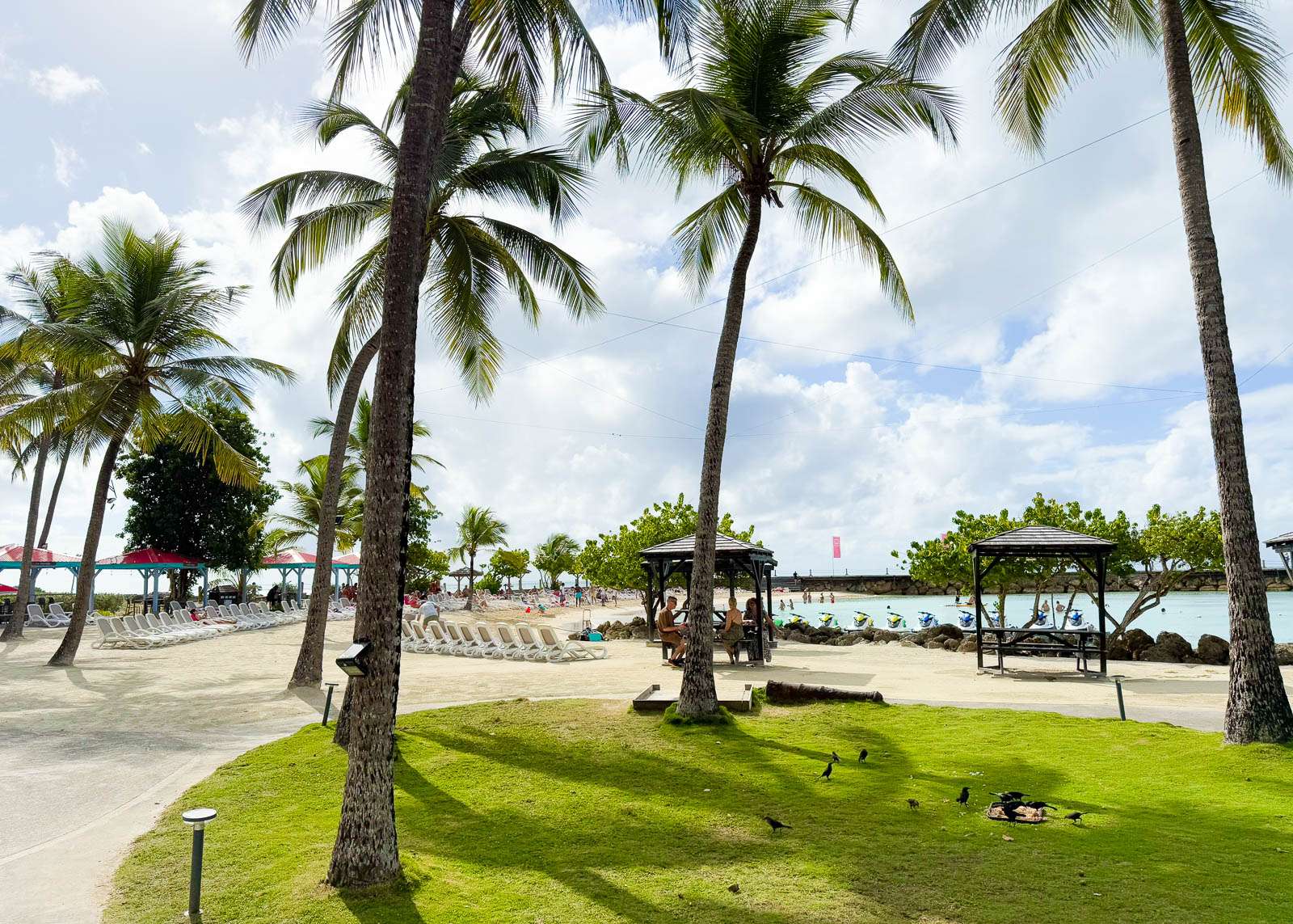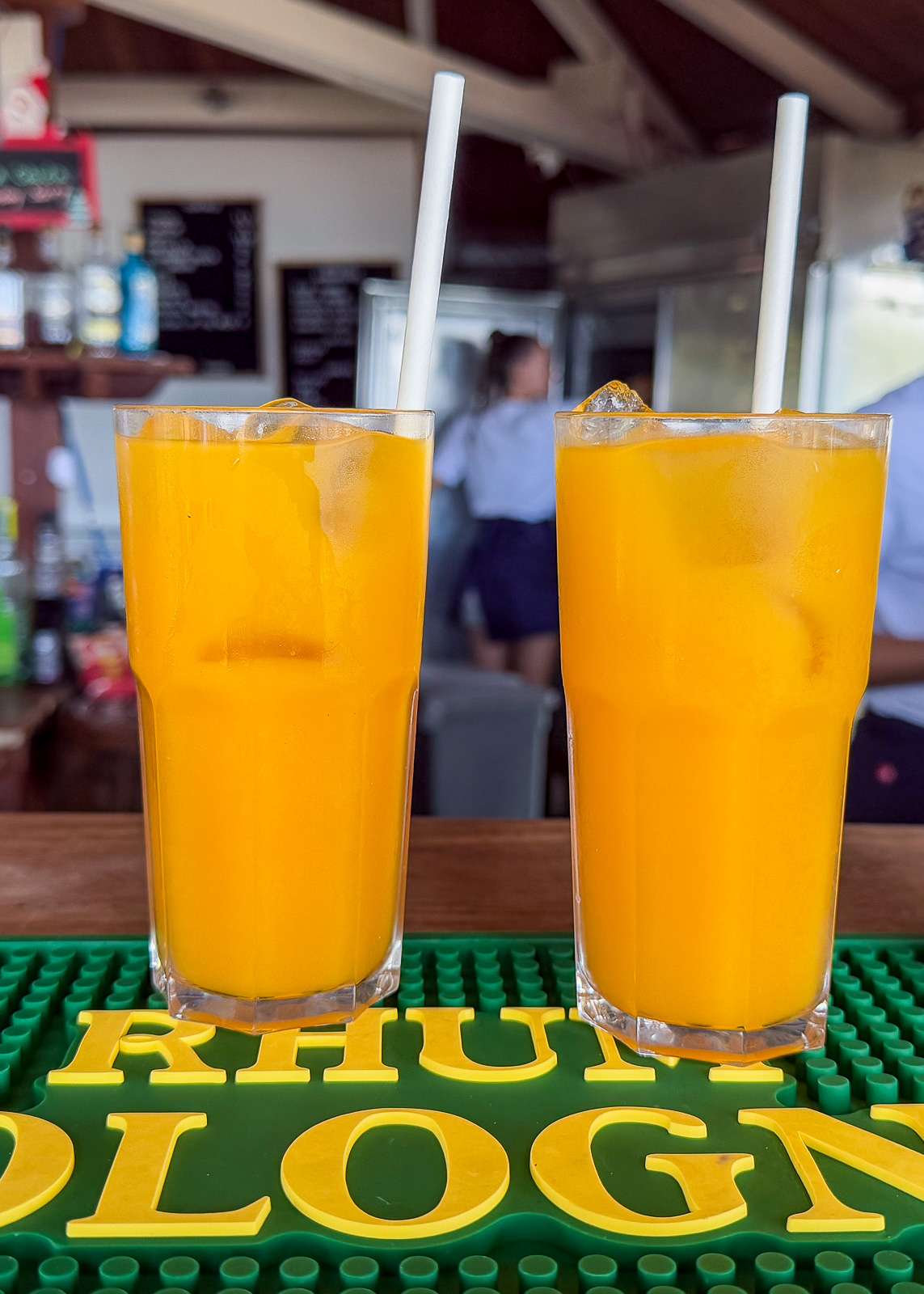 Poikkeamme kuitenkin ruotsalaisomisteisen Fort Royal Langley Resort -hotellin rannalla, sillä olimme juomatauon tarpeessa. Rantabaarista valitsemme, rommin sijaan, mangomehut ja istahdamme hetkeksi rantatuoleihin ihailemaan näkymiä.