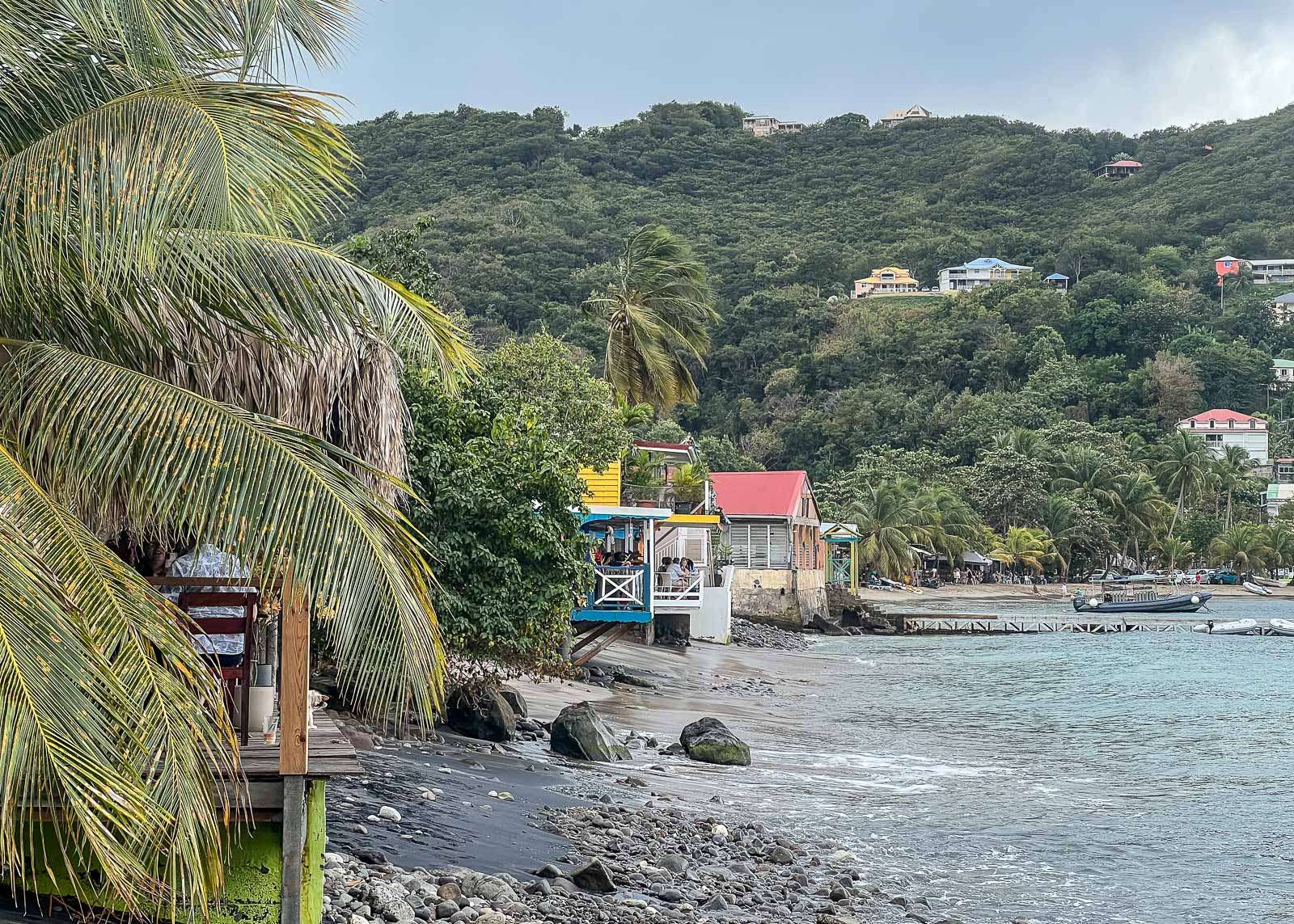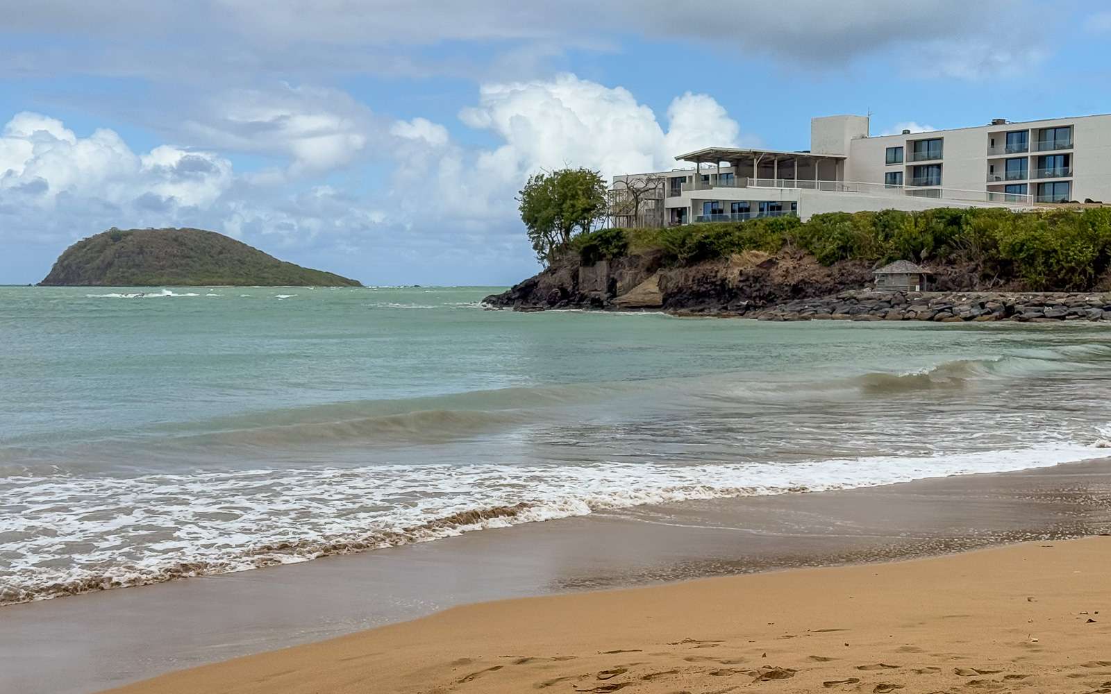 Rannan toisella reunalla näkyvä valkoinen Langley Resort -hotelli on jo esimakua seuraavalle kohteellemme. Hotelli on lähellä Deshaiesin kylää ja monet tulevat Guadeloupelle juuri Deshaiesin takia, etenkin britit.