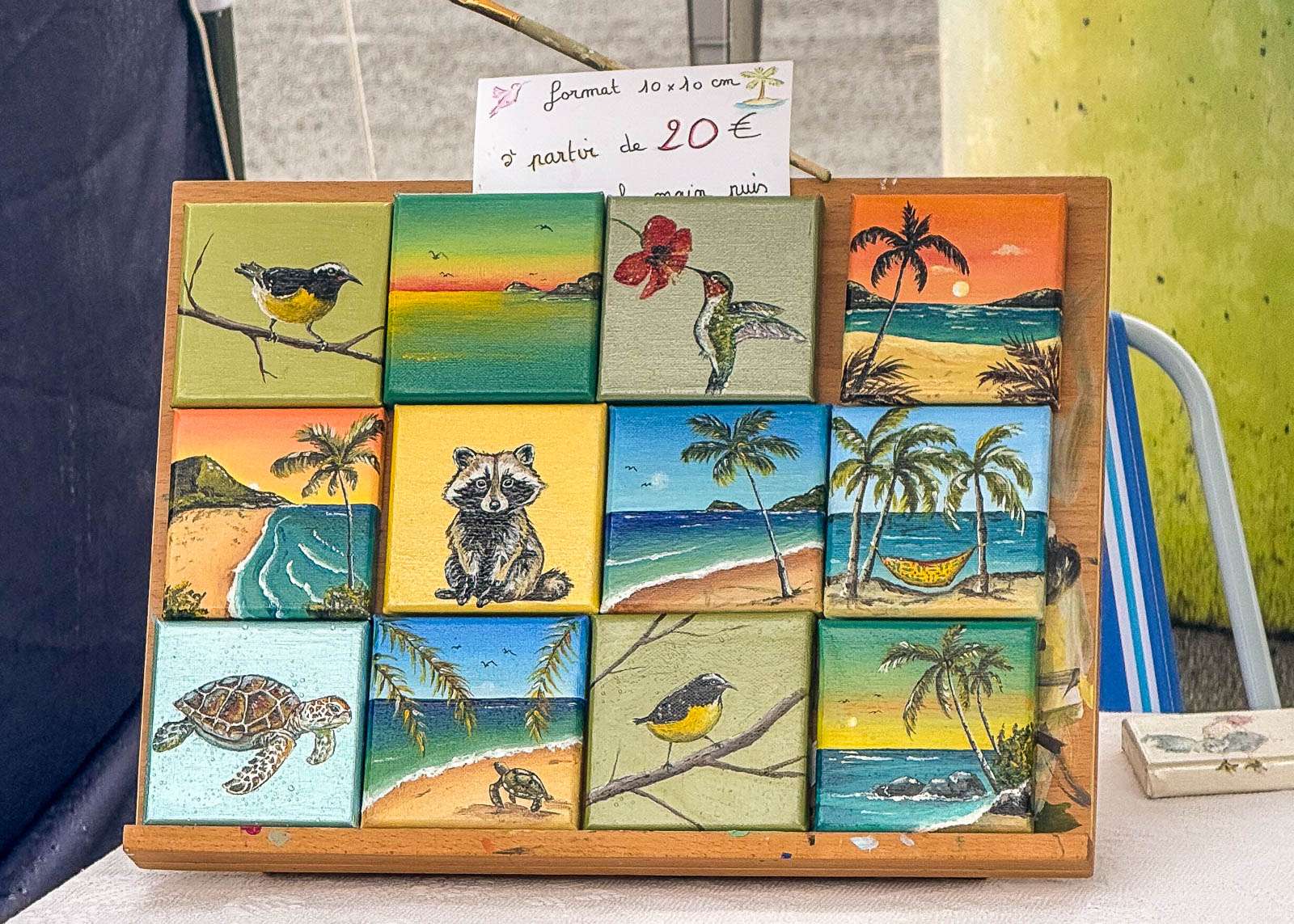 Markkinoilla kiinnitimme huomiomme monessa yhteydessä käytettyyn punakeltaruutuiseen kankaaseen, joka tunnetaan kuulemma nimellä madras. Värikkään puuvillakankaan juuret juontavat Intiaan, Madrasin (nykyisin Chennain) kaupunkiin, josta siirtomaa-aikaan kangasta tuotiin Karibialle ja siitä tuli osa paikallista pukeutumista. Vielä nykyisinkin sitä käytetään kansallispuvun tapaan ihan oikeasti – ja tietysti kaikissa turisteille myytävissä tuotteissa. Mekin ostimme madras-kuosisen jääkaappimagneetin :-)