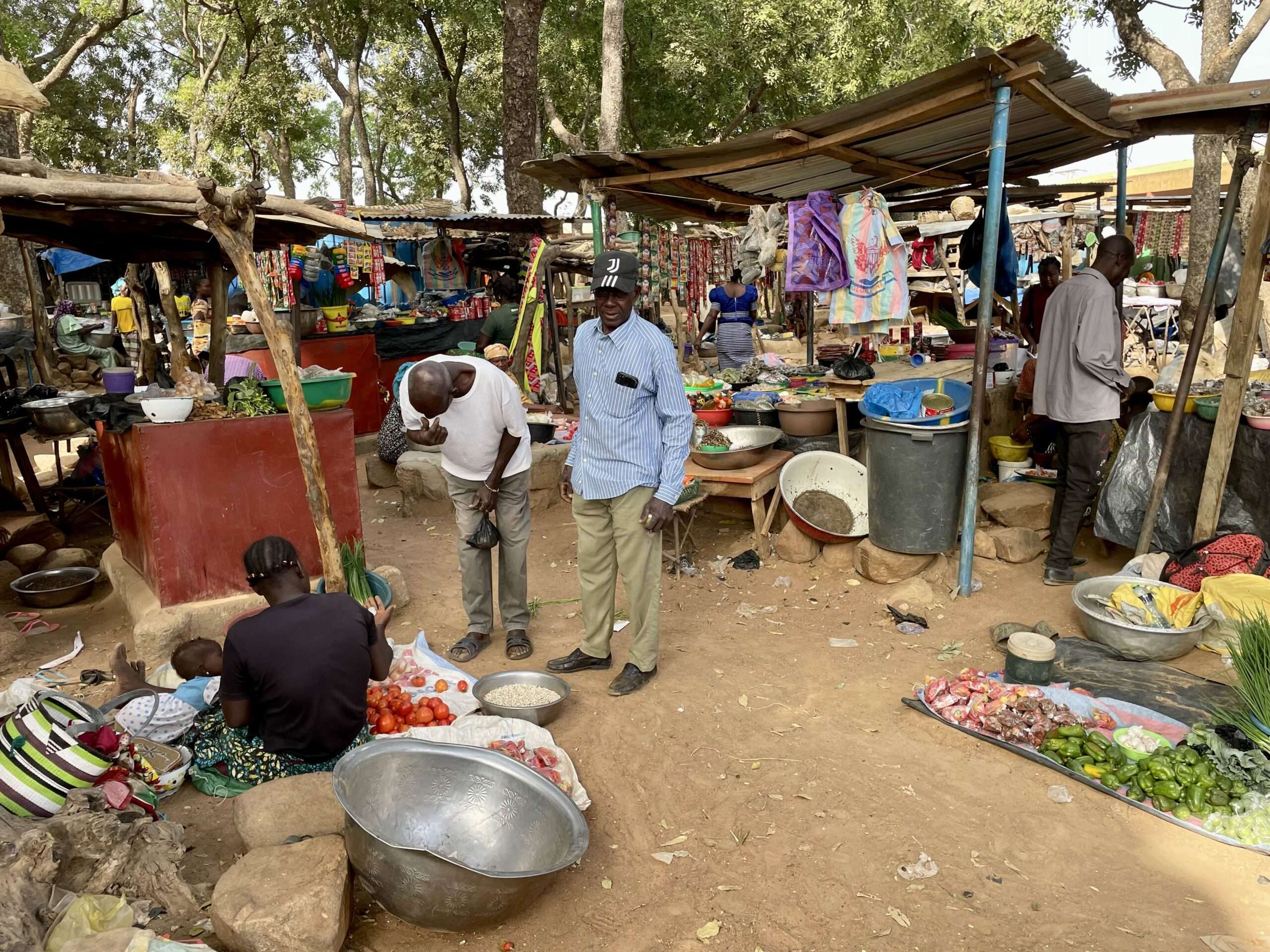 Jos afrikkalainen markkinameininkikin Burkina Fasossa on länsimaalaiselle elämys, niin Tiébélén maalaismarkkinat ovat vielä parempi sellainen. Täällä ihmiset tosiaan myyvät omilla pihoillaan tuotettuja tuotteita eivätkä tuoretukkutorilta noudettuja. Hirssiolutta, doloakin, Daniel maistoi. Siis sama Daniel, joka ihmetteli, miten Asmarassa uskalsimme syödä sikäläistä gelatoa! Mutta ei tullut ongelmia, ei dolosta Burkina Fasossa eikä gelatosta Eritreassa.