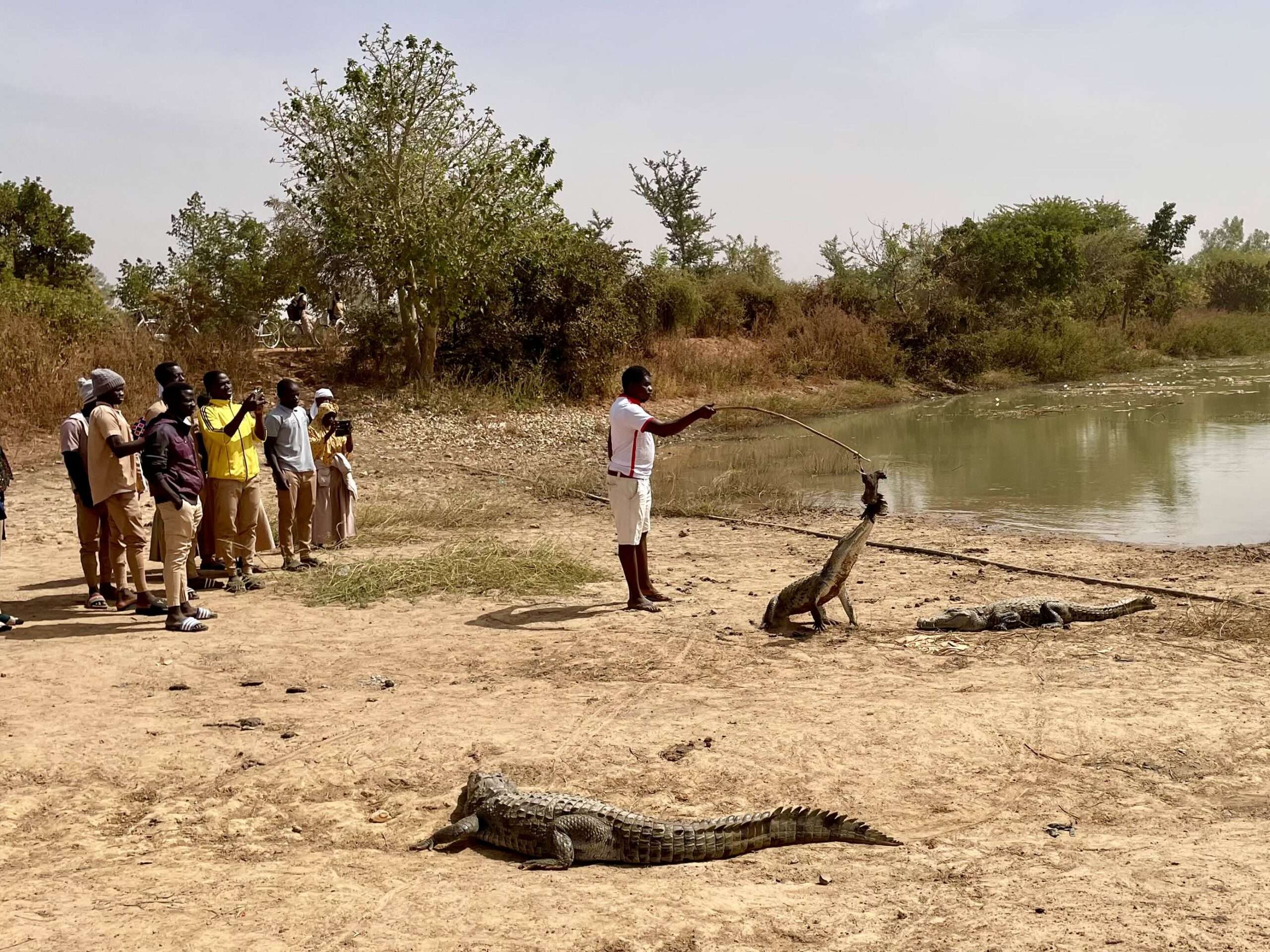 Tiébéléstä Daniel palasi vielä Ouagadouguun, josta hän teki päiväretken läheiseen Bazoulén kylään katsomaan pyhiä krokotiilejä. Legendan mukaan kuivuuden uhatessa seutua krokotiili johdatti kyläläiset järven luo ja sen jälkeen järvi ja sen krotiilit ovatkin olleet pyhiä eläimiä. Mikäs siinä, hyvähän se krokotiilin on pyhänä eläimenä elellä, kun palvojat kantavat kanat suoraan suuhun. Vaikka pyhät krokotiilit olivat, nekin mielenkiintoisia, niin ehkäpä itse kylä, jossa väki eleli olkikattoisissa savimajoissa kylän kaivon ympärillä oli sittenkin vielä mielenkiintoisempi. Kylässä oli myös sepän paja ja jopa moskeija.