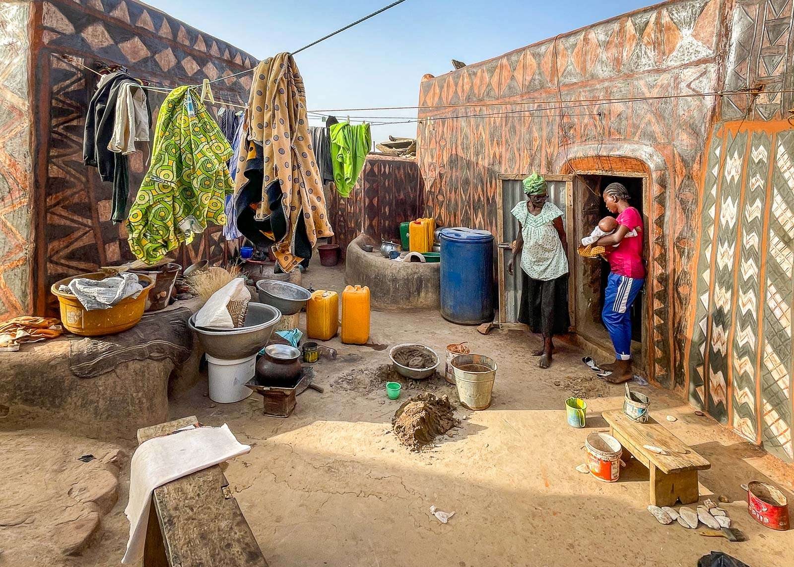 Noin hehtaarin kokoisella alueella asuu jopa muutama sata kuninkaallisen perheen jäsentä savesta rakennetuissa taloissa, jotka on koristeltu mitä erilaisimmin symbolein – kaikilla symboleilla on joku merkitys, ja aina muutaman vuoden välein talot maalataan uudelleen, sillä perinteisistä aineksista sekoitettu maali haalistuu Afrikan auringon alla nopeasti. Talojen muodoista pystyy päättelemään jotain asukkaastakin. Pyöreissä, pienissä taloissa asuvat sinkkumiehet, suorakulmion muotoiset talot on varattu pariskunnille ja niin edelleen.
