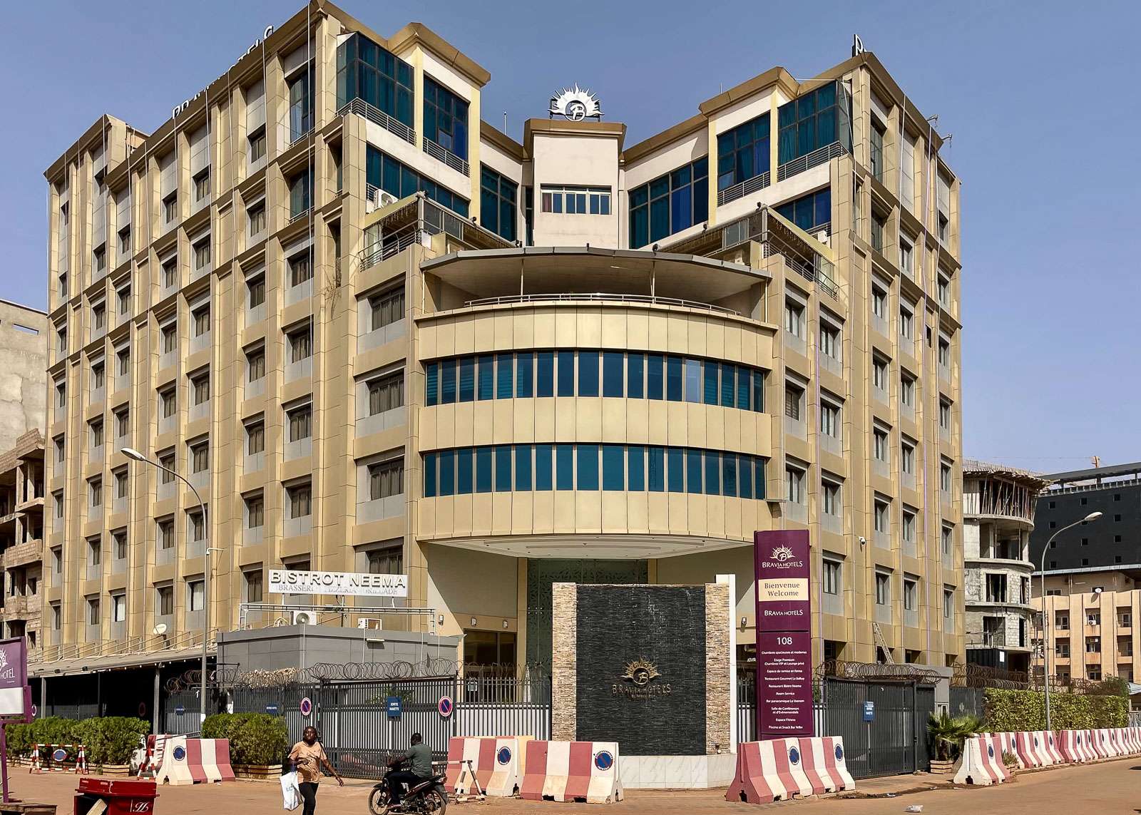 Ouagadougoun (muista ääntämys!) lentokentältä kaupungin keskustaan matkaa on vain kilometrin verran, mutta illan jo pimennyttyä Daniel luopui alkuperäisestä suunnitelmastaan kävellä Bravia-hotellille. Paikallisoppaan mukaan kävelemiseenkään, pimeässäkään, ei olisi ollut estettä, siis turvallisuusmielessä. Näin vaikka Burkina Faso onkin esimerkiksi Brittien matkustustiedotteessa on pääosin punainen – onhan siinäkin Ouagadougou sentään oranssi. Toinen kaupungin keskustan hotelleista, Splendid-hotelli, oli terroristi-iskun kohteena vuonna 2016. – mutta niin oli samana vuonna Etoile du Sud -hotellikin Grand Bassamissa. Asuimme samassa hotellissa muutama vuosi sen iskun jälkeen ja luultavasti iskusta johtuen Grand Bassam oli ehkä parhaiten vartioitu kylä Norsunluurannikolla.