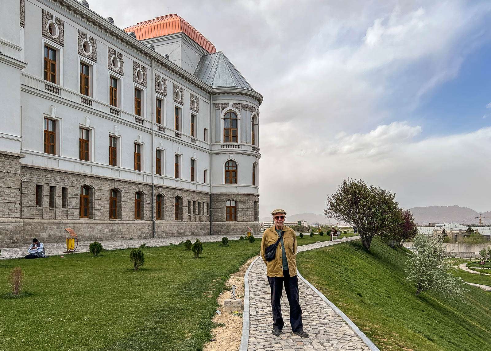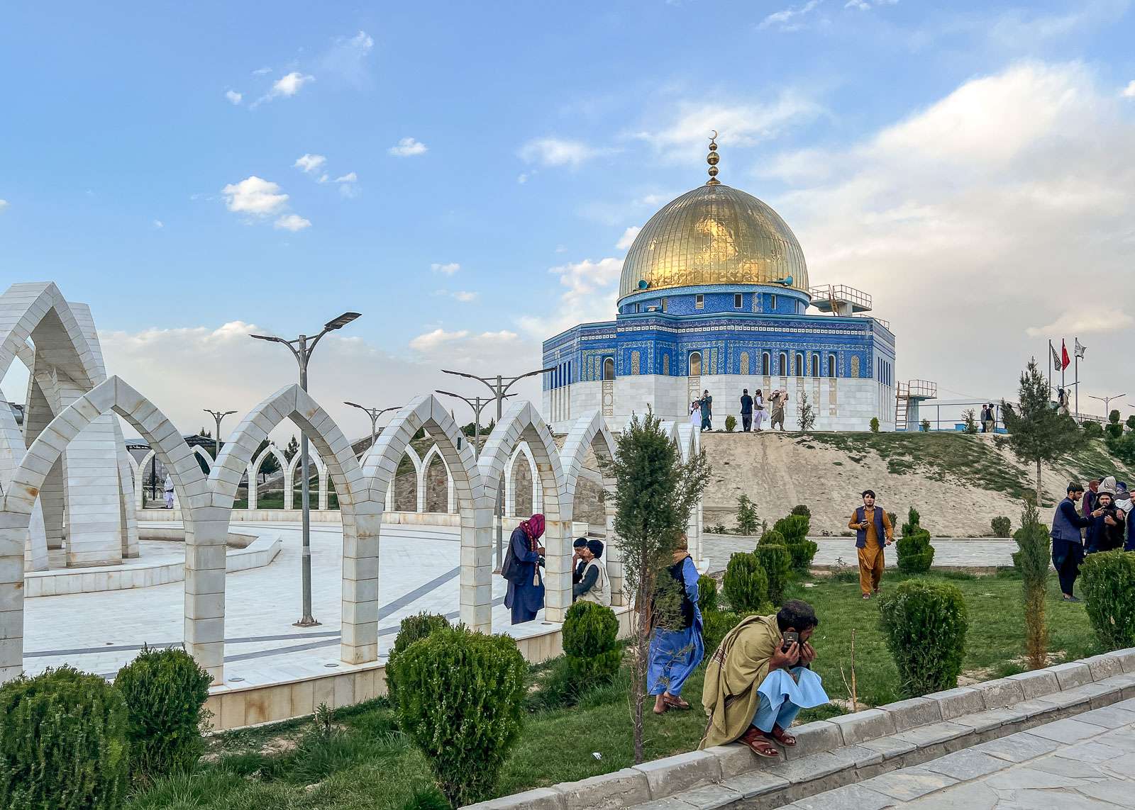 Kabulissa niin Juha kuin Anna-Katri vierailivat sinisessä moskeijassa (Sakhi Shah-e Mardan Shrine tai Ziyarat-e Sakhi) ja tutustuivat myös kaksikerroksiseen keltaiseen moskeijaan (Shah-e Doh Shamshira). Entisen kuninkaan Nadir Shahin mausoleumillakin taisivat molemmat käydä, ei niinkään mausoleumin, mutta sieltä aukeavien näköalojen takia. Mainitut kaksi moskeijaa sisältyivät jo valmiiksi Travellerin Kabulin päivien ohjelmaan ja tuon Nadir Shahin mausoleumin lisäsimme vielä omaan ohjelmaamme. Omaan ohjelmaamme, sillä meillä kävi tämän matkan osalta sikäli satumainen tuuri, että saimme viettää Kabulissa kaksi päivää keskenämme mukavan paikallisen englantilaisen kirjallisuuden opiskelijan seurassa.