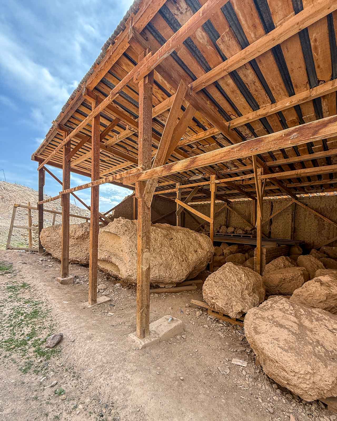 Seuraavana aamuna lähdemme tutustumaan alueeseen. Parhaat kuvat oli kyllä jo otettu, eli eihän näin isoista kohteista saa hyviä kuvia enää niiden juurelta. Kauempaa ei kuitenkaan nähnyt esimerkiksi, että räjäytettyjen patsaiden kappaleita oli kuitenkin laitettu talteen. Ehkä aluksi vaan siksi, että niiden kuljettaminen kauemmaksi olisi ollut turhan työlästä, mutta sittemmin niitä on kyllä pyritty inventoimaan ja luetteloimaan. Tuskin palasista enää buddhia saada kasaan sillä patsaiden räjäyttäminen tuotti toki myös paljon niin pieniä kivenmurikoita, että tallella oleva osuus on ehkä vain puolet kaikesta. Osa asiantuntijoista ja paikallisista myös vastustaa ajatusta patsaiden kokoamisesta tai uudelleen rakentamisesta, sillä nyt tyhjät aukot toimivat muistomerkkinä kaikesta tapahtuneesta eikä historiaa tältä osin haluta pyyhkiä pois.