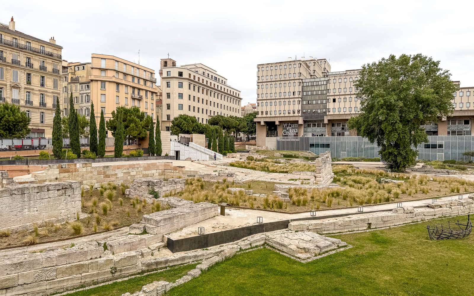 Vähän myöhemmin siirrymmekin vanhaan kreikkalaiseen satamaan, joka tosin vuosien saatossa on päätynyt sisämaahan, maan nousun ja rantojen täyttämisen myötä. Vielä nykyisinkin – tai taas nykyisin – satamaa voi ihmetellä Musee d’Histoire de Marseillen edustalla alueella, joka tunnetaan myös nimellä Jardin des Vestiges (jäänteiden puutarha). Tuo taas nykyisin tulee siitä, että alue löydettiin uudelleen vuonna 1967, kun keskustaan rakennettiin uutta ostoskeskusta, jonka myötä vanhan satama-alueen päälle muodostuneen parkkipaikan tilalle oli tarkoitus rakentaa pysäköintitalo. Ei sitten rakennettu, kun kaivauksissa löytyikin osa muinaista kreikkalaista satamaa, linnoituksia ja hauta-alueita. Alueelta aina vuoteen 1983 asti jatkuneissa kaivauksissa löydettyä esineistöä voi halutessaan käydä katsomassa museossa – lyhyen vierailumme aikana tyydyimme katsomaan raunioita.
