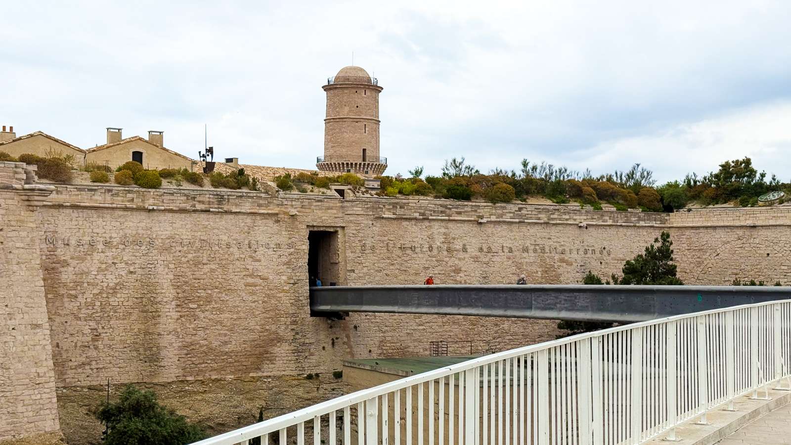 Museo ja sen vieressä oleva linnoitukset liittyvät toisiinsa korkealla kulkevia siltoja pitkin. Ensimmäistä siltaa (Passerelle Parvis-St Jean) pitkin pääsee vanhan sataman rannalta – kunhan on ensin kiivennyt portaat ylös – linnoitukseen ja toinen silta (Passerelle Fort Saint-Jean – J4) vie moderniin metallisen pitsin verhomaan museorakennukseen. Museon ensimmäisestä kerroksesta voi sitten jatkaa matkaa katedraalille ja vaikka Le Panierin kaupunginosaan.