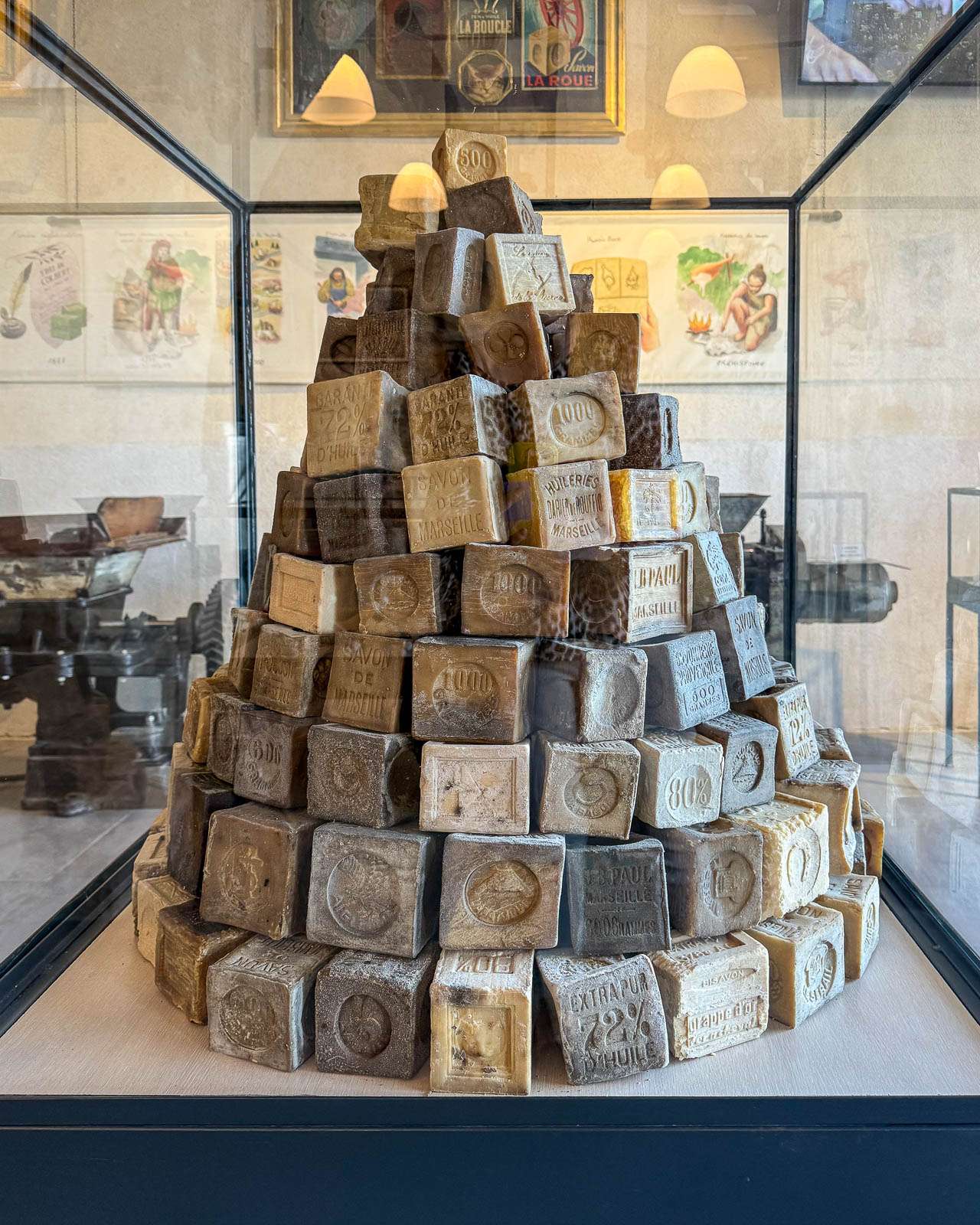 Saippua kuulemma keksittiin aikoinaan Aleppossa, Syyriassa (onkohan siellä saippuamuseo?). Eurooppaan se tuli Marseillen kautta ja koska sitä nyttemmin on valmistettu Marseillen seudulla jo satoja vuosia se on osa niin Marseillen kuin koko Ranskan kulttuuriperintöä.
