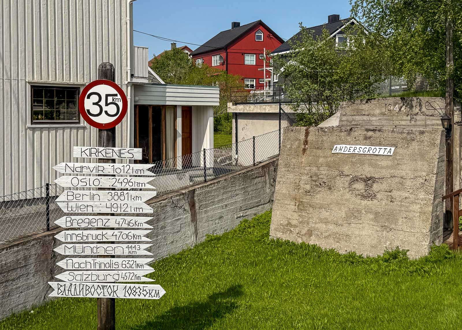 Andersgrottanin lähistöllä, oikeastaan kai sen päällä, sijaitsee myös muistomerkki puna-armeijan sotilaille. Jos jo Andersgrottania esitelleen rouvan kertomukset saivat hetkittäin aivot solmuun nykyihmiseltä, joka on viime vuosina oppinut, että Venäjä on paha, niin samalla tavalla tämä muistomerkki pakotti miettimään, että mites se nyt olikaan, miksi täällä, Norjassa, muistetaan hyvällä puna-armeijan sotilaita. Mutta niin kai se on, että pahuuskin on suhteellista – tilanteessa, jossa liittoutuneet, myös venäläiset, taistelivat saksalaisia sotilaita vastaan, niin puna-armeijan sotilaat olivat oikealla puolella.