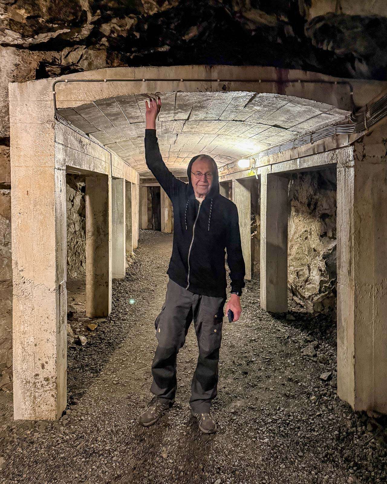 Saimme myös hiukan kierrellä pommisuojan käytävillä, joista osa oli alkuperäisiä, mutta viimeisimmät parannukset ja laajennukset oli kuulemma tehty sodan jälkeen vuonna 1949 Norjan liittyessä Natoon.