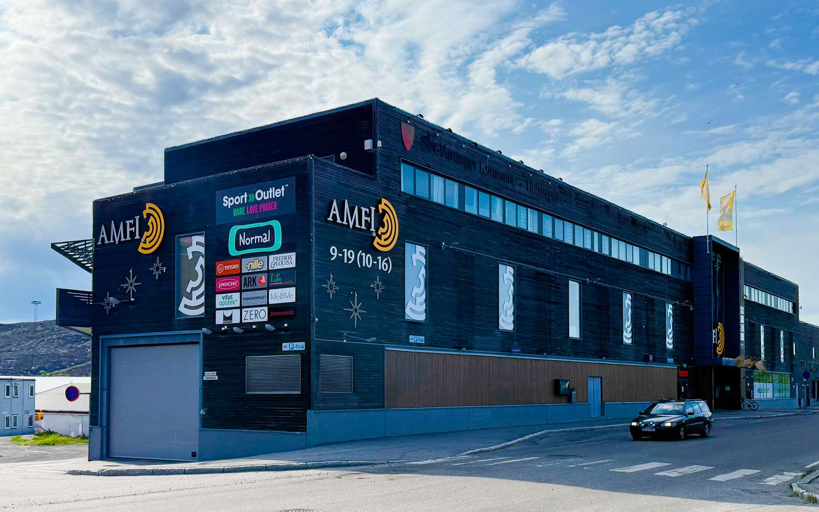Pienen kaupungin keskustassa ravintolat ja muutamat kaupat keskittyvät kävelykadun Dr. Wessels gatelle. Kadun toisessa päässä on myös pieni ostoskeskus Amfi. Testasimme kaupungin ravintoloista Surf & Turfin, jonka totesimme mainioksi ja ostoskeskuksen “yleisravintolan”, josta sai kaikkea pizzoista aasialaiseen ruokaan ja salaatteihin. Niin ostoskeskuksessa kuin kävelykadun liikkeissä suurimman pinta-alan saavat retkeilyvarusteet – ollaanhan täällä erämaiden ja kalastusvesien äärellä.