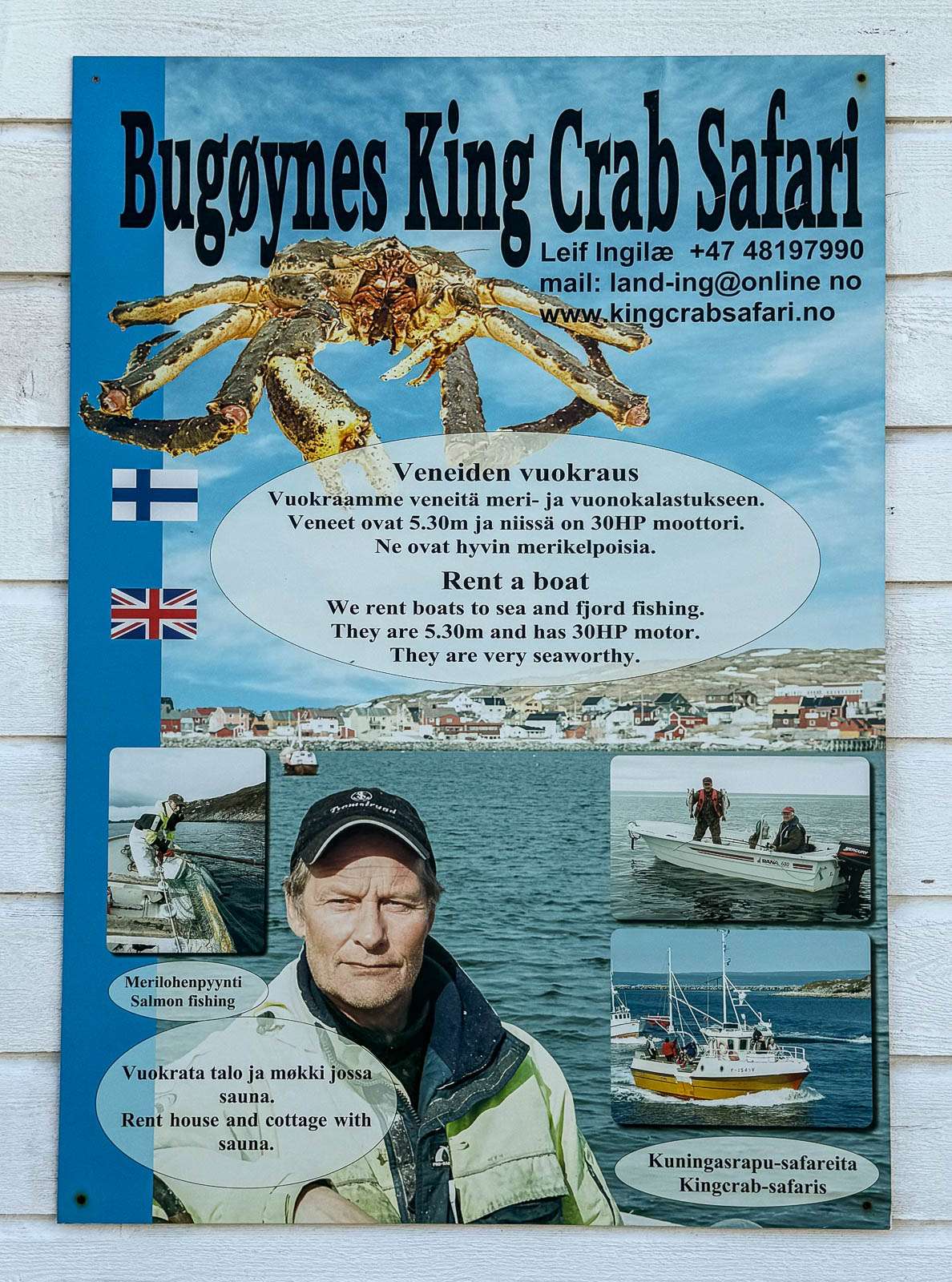 Ruuan ja kauniiden näkymien ohella Pykeija tarjoaisi kuningasrapuun liittyviä aktiviteetteja – ja toki kuningasrapuja ruuaksikin, jos niistä on kiinnostunut. Kalastusretkillä voinee kalastaa muutakin, jos haluaa. Tarjolla olisi myös saunomista legendaariseksikin kutsutussa Jäämeren saunassa, mutta emme olleet jäämässä yöksi, emmekä nyt edes saunaan (ja uimaan). Yöksi olisi kyllä voinut jäädä, Bistron yhteydessä olisi ollut tarjolla myös majoitusta ja asunto-autot ja -vaunut olivat kauniisti parkissa vuonon rannalla.
