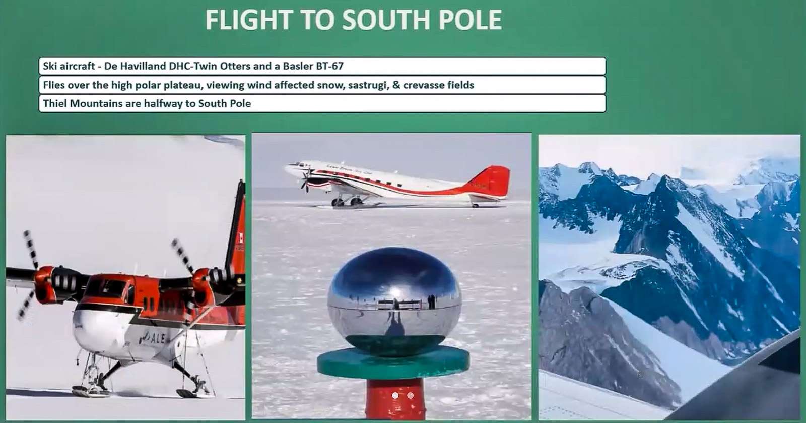 Alla muutama kuva esityksestä pienen kuvakarusellin muodossa, eli kuvia lennosta leirille, leiriolosuhteista, kulkuneuvoista ja retkistä: