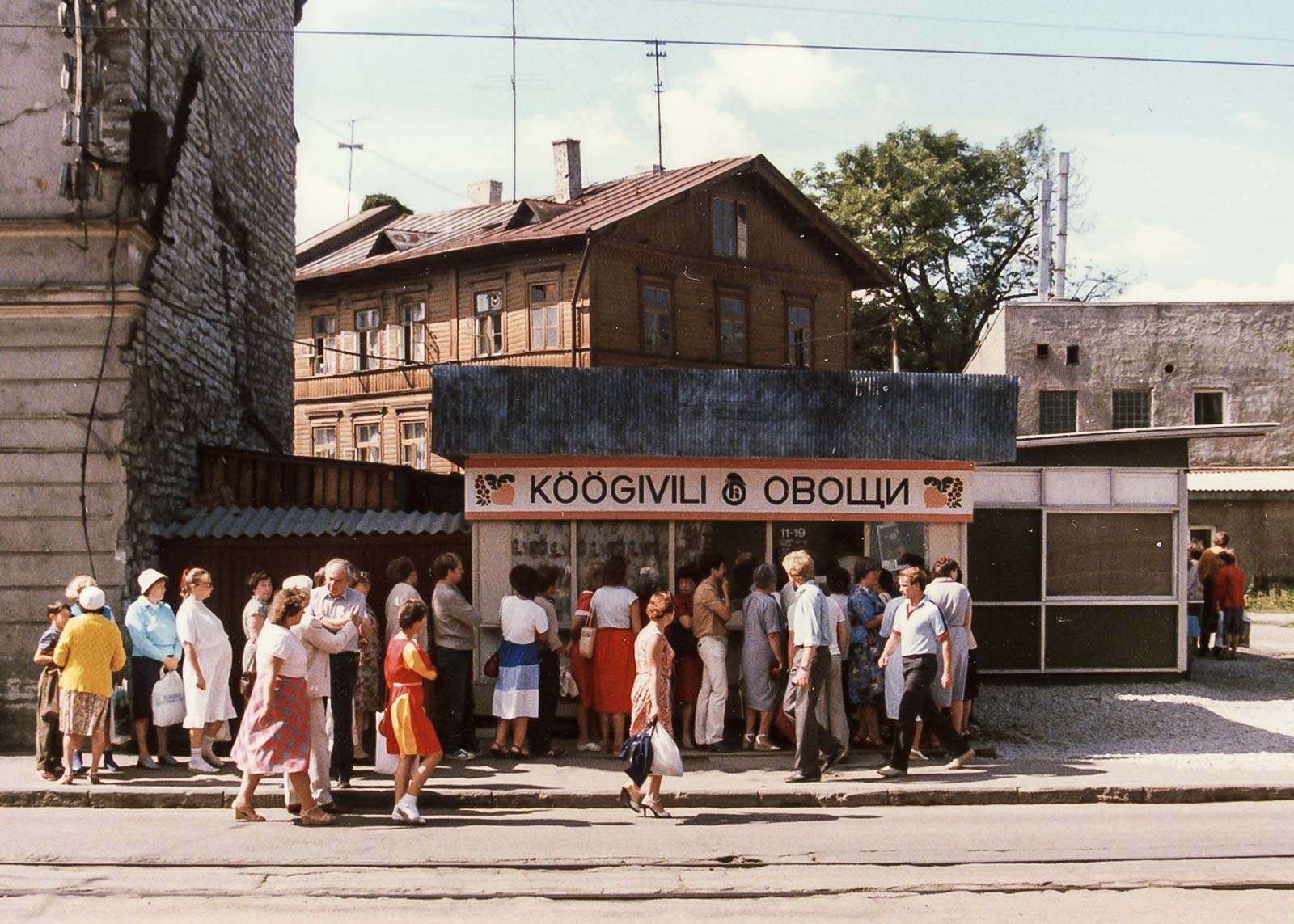 Mekin kohtasimme virolaisia mm. kaupankäynnin merkeissä, tuolloin käypää valuuttaa olivat mm. sukkahousut, farkut ja lenkkitossut. Ruplilla söi ja joi sitten isompikin seurue hyvin muutaman päivän ajan – ostettavaa kaupungissa oli tuolloin vähemmän, vaikka Kaubamaja-tavaratalokin oli jo olemassa.